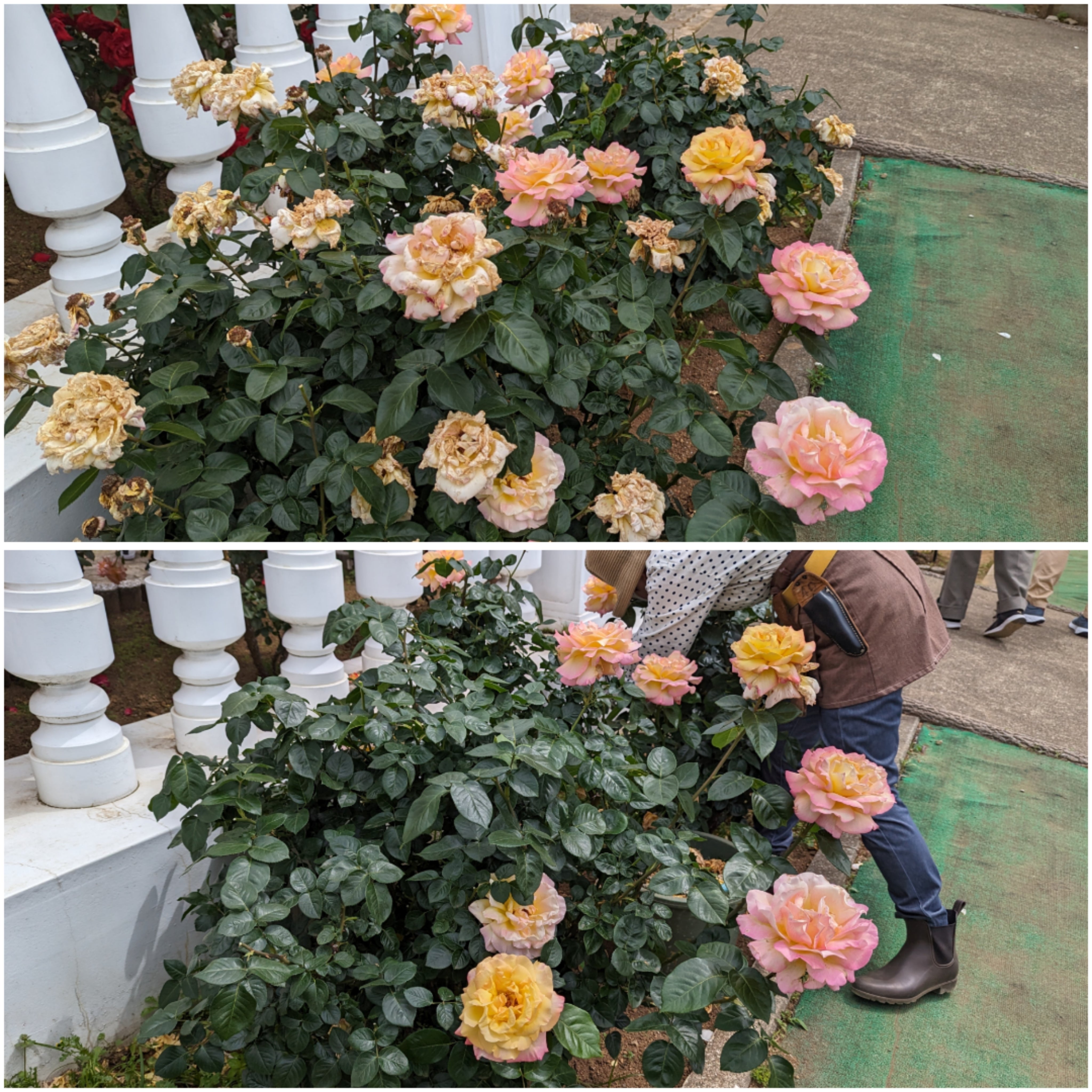 花が大きいバラ(HT)は、茶色い花が気になりますね。