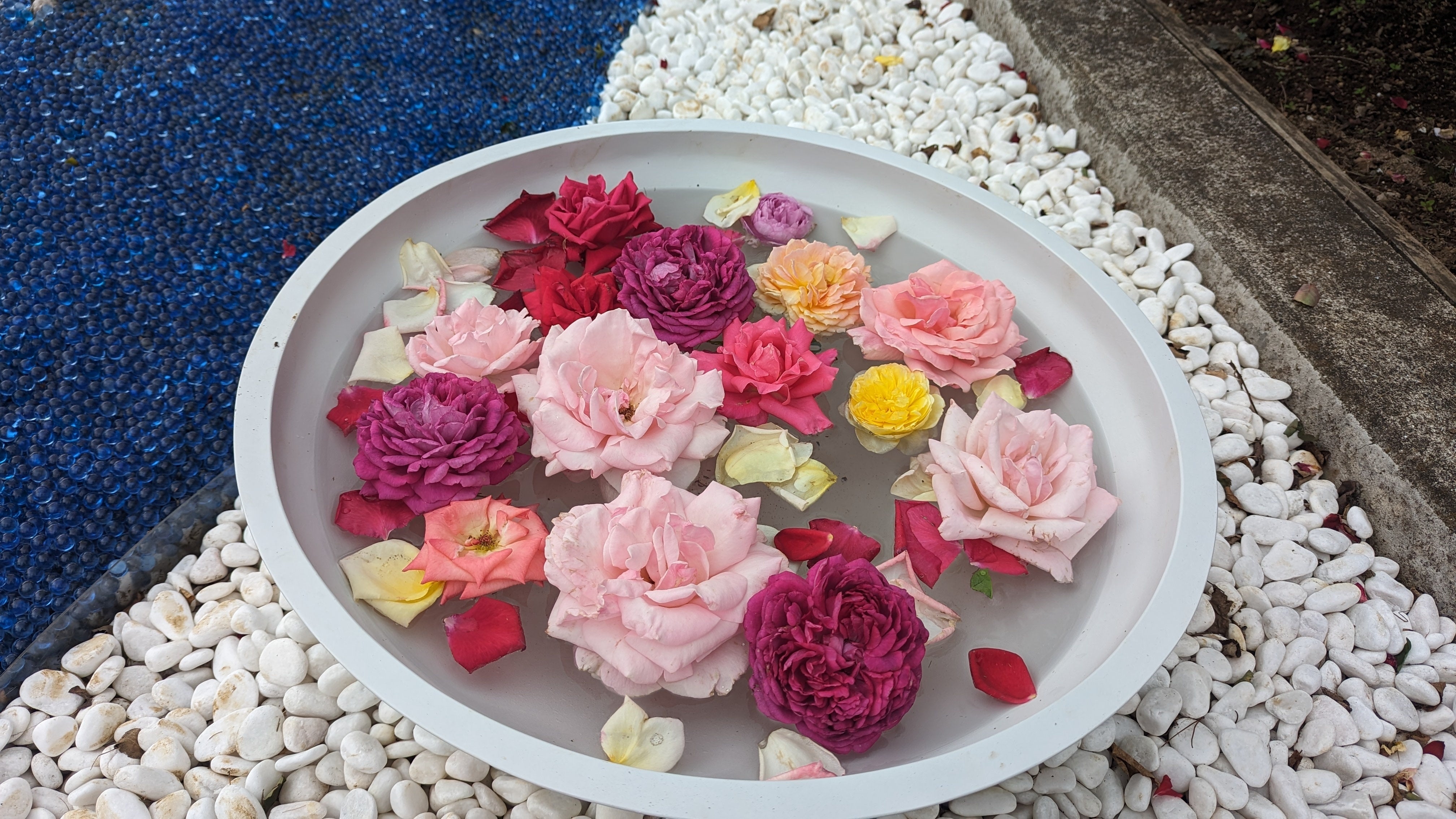 今年は緑化フェアも同時開催され、様々な装飾が行われていましたが、中でも「花手水」には、雨や風で折れてしまった綺麗なバラを活けることができました。これまでは廃棄されていました。