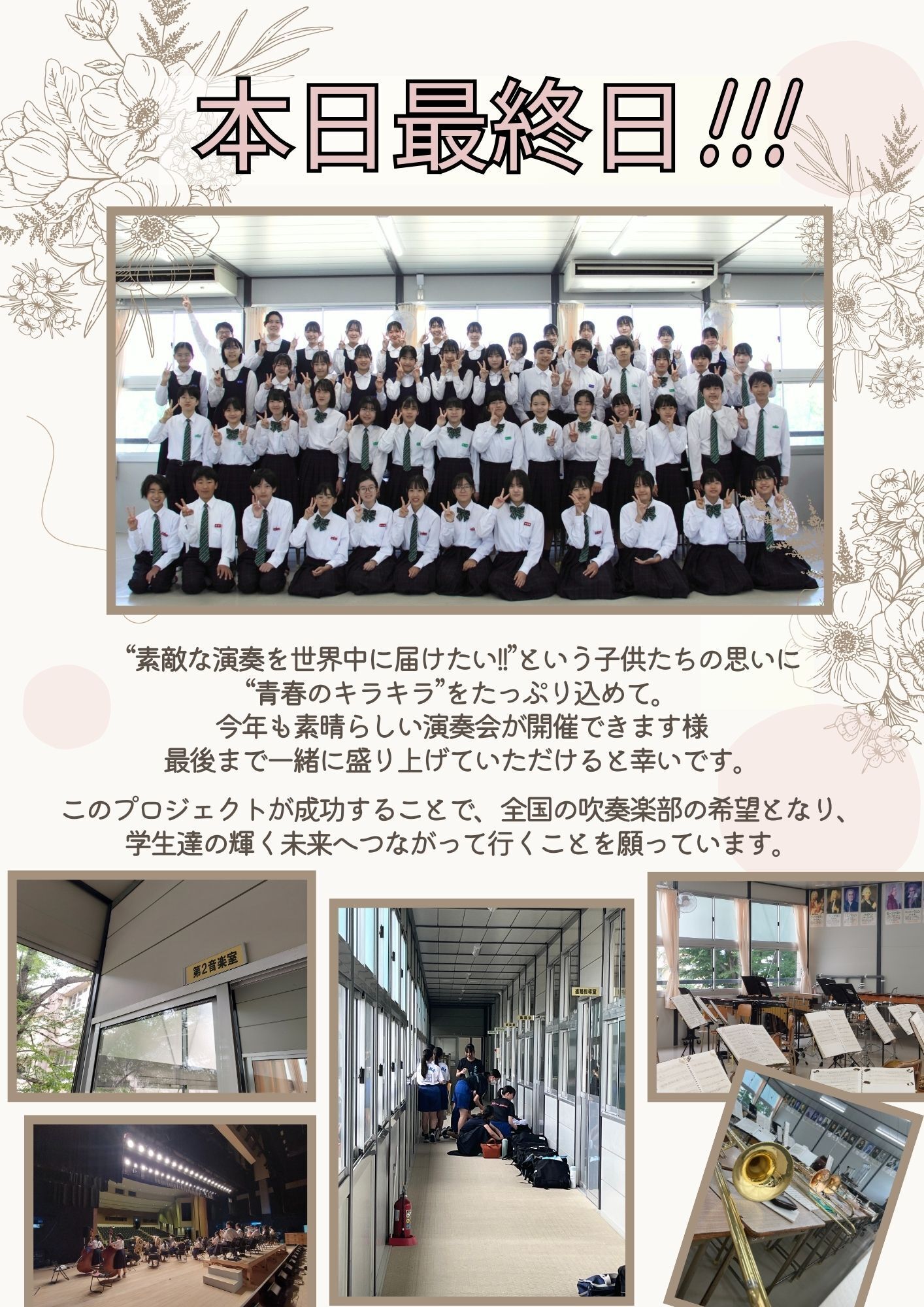 帯中吹奏楽部 “定演プロジェクト”は本日最終日となります。