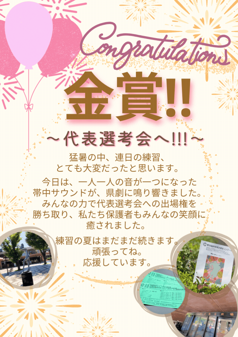 本日、第68回熊本県吹奏楽コンクールにて見事“金賞 ”を受賞しました!!!