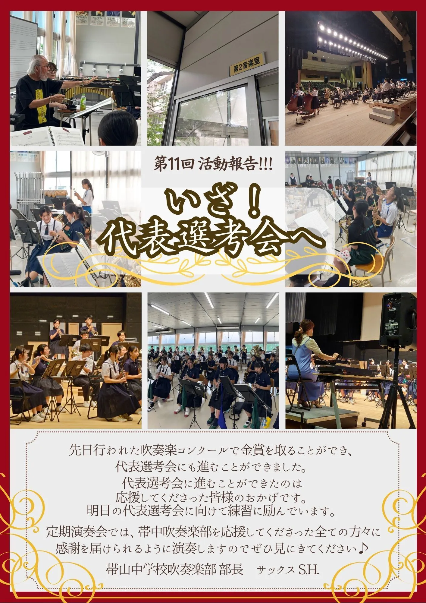 今回は、『帯山中学校吹奏楽部』部長より送られてきましたメッセージを報告します。