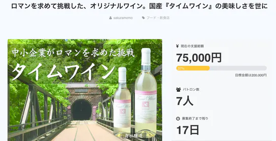 2018/05/21 14:02こんにちは! 十四年前に都内の中小企業が醸造したオリジナルワイン『タイムワイン』。 今年に至るまで自然あふれる山梨県甲州に眠らせ続け、遂に解禁となりました。 掲載期間が残り3日となりましたが、大変ありがたいことに、多くのご支援を頂戴しまして、現在達成率82%と達成まであと僅かとなりました。 また、先週CAMPFIREスタッフ様によるピックアッププロジェクトにもお取り上げいただきました! ありがとうございます...! 残り3日間、多くの人にご覧いただけるよう、タイムワインの魅力を伝え続けたいと思います! よろしくお願いいたします。 もっと見る