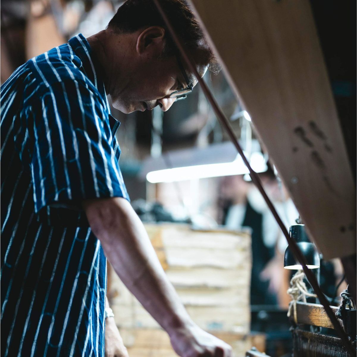 創業大正8年、福岡県筑後市で約100年天然藍染、手織りで一本一本、伝統を守りていねいにつくり続ける。
