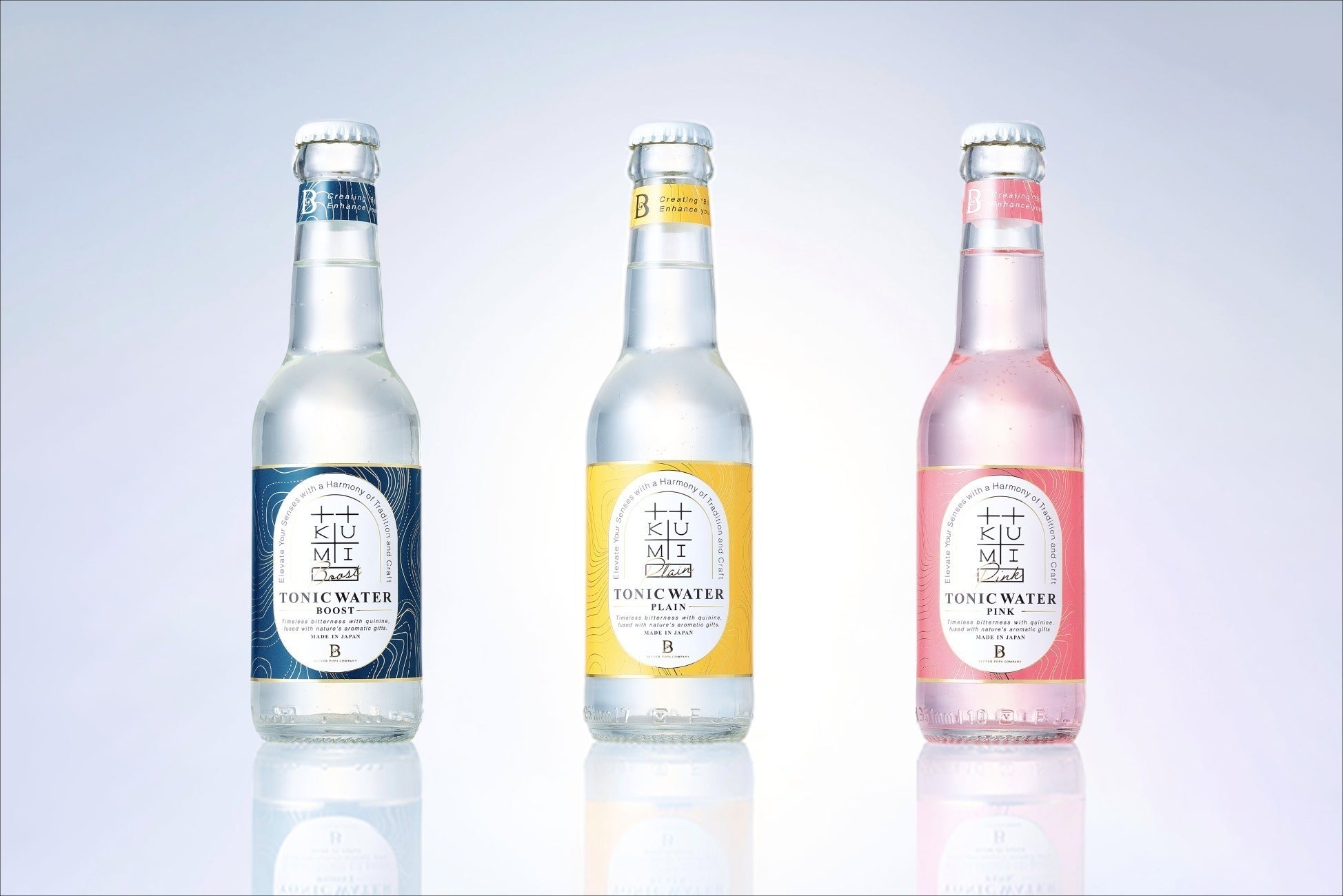 ジンの味を邪魔しないオーセンティックな【PLAIN】、ピンク色でほんのり花の香りがする【PINK】、ニガヨモギを使用した苦さ引き立つ【BOOST】の3種展開です。