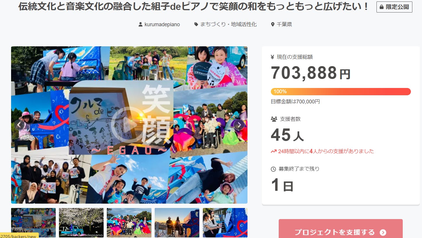 組子deピアノのクラウドファンディングですが、本日100%(¥700,000)達成いたしました!