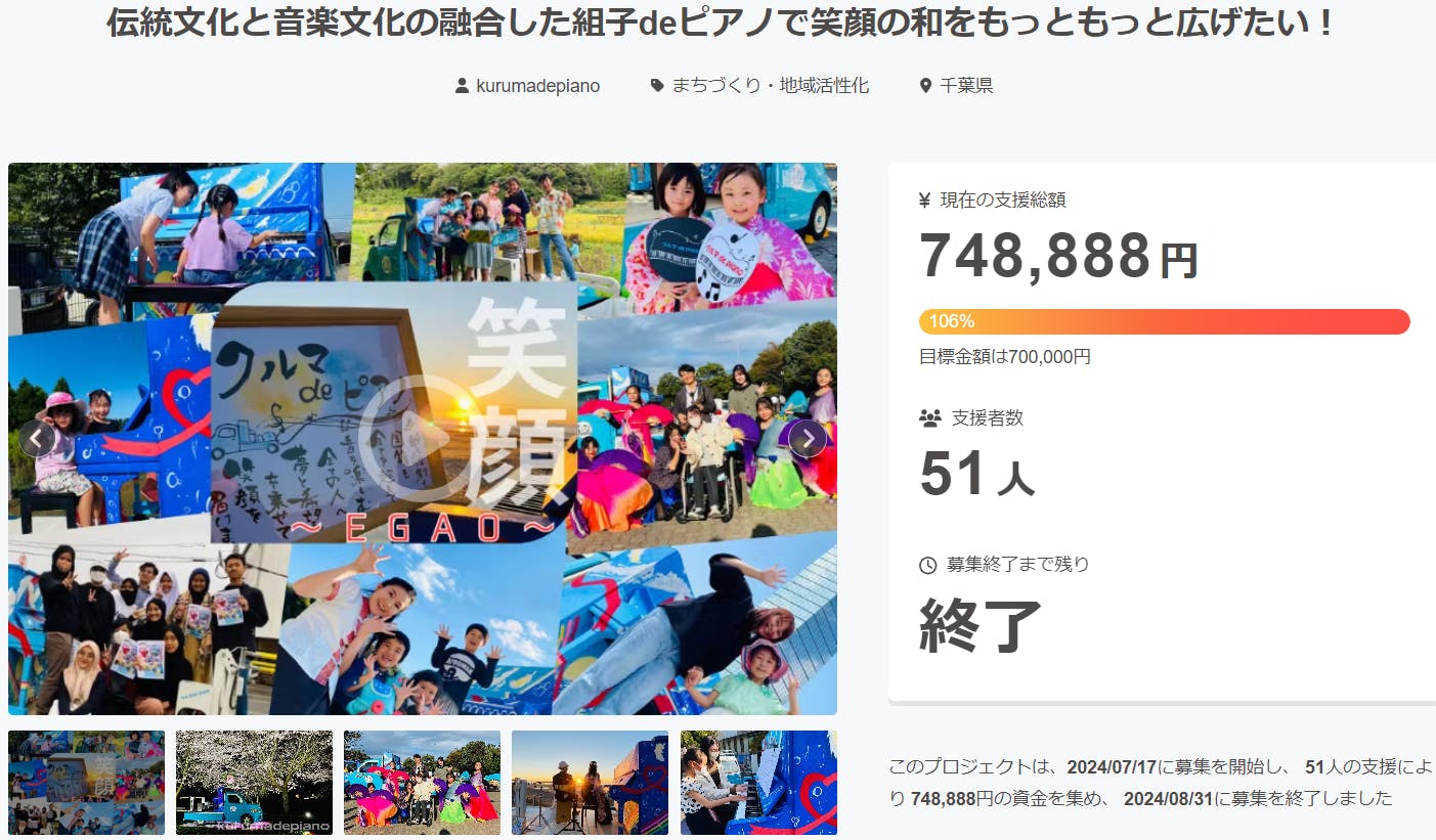7/17~8/31の間で挑戦をさせていただいた「組子deピアノ」のクラウドファンディングは、