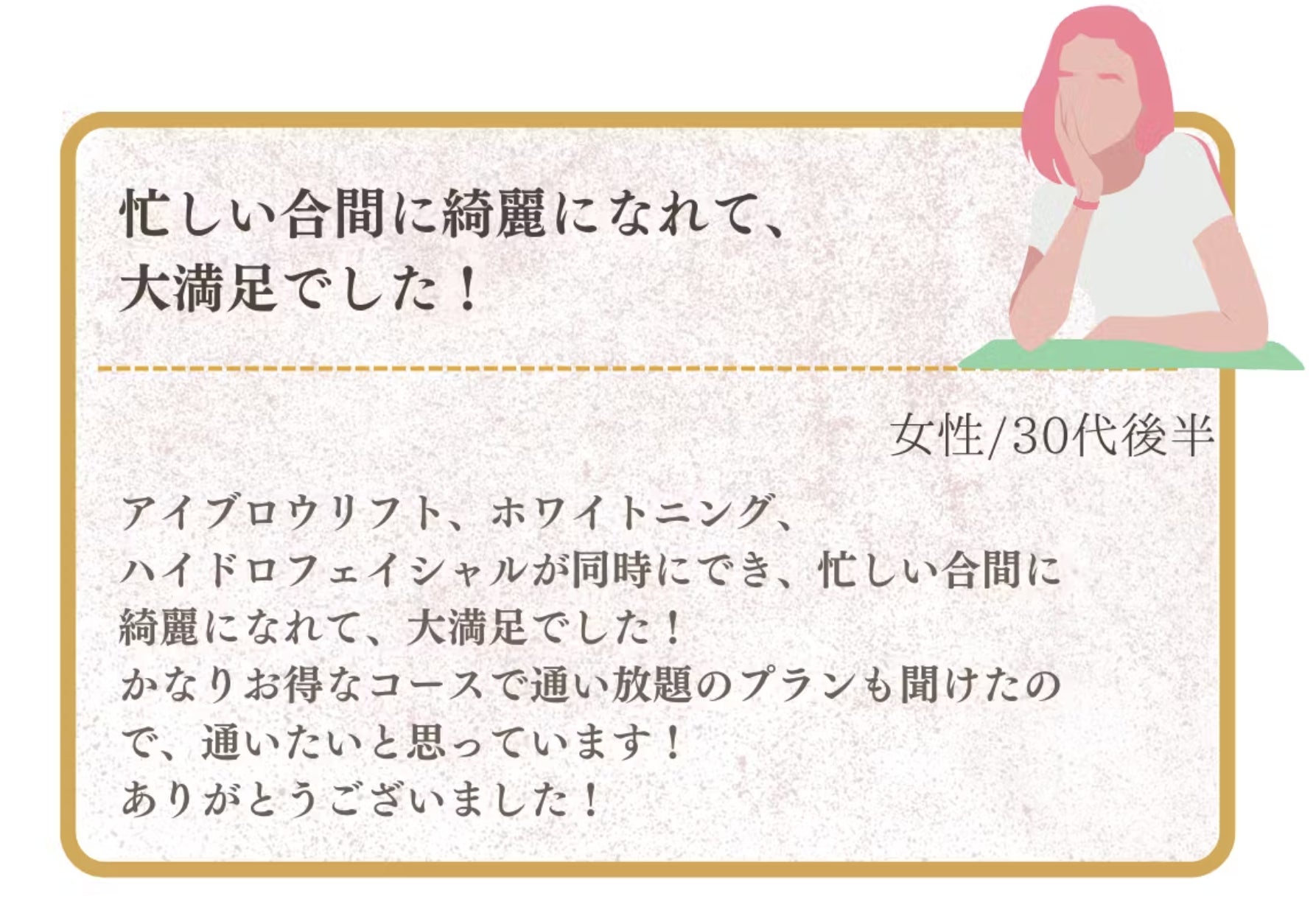とはいえ顔のお手入れといってもやることが色々あって大変ですよね。例えば、忙しい日々の中で、歯医者、眉毛サロン、美容サロンなどのいろんな店舗に通うのは大変ではないでしょうか?