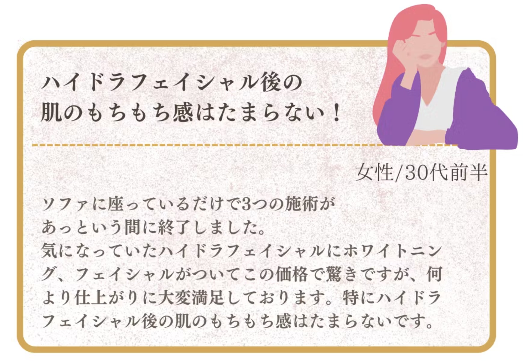 通常17,000円より12,000円OFFハイドラフェイシャルとホワイトニングが同時にできるメニュー!忙しいあなたにコスパ×時短で嬉しい!