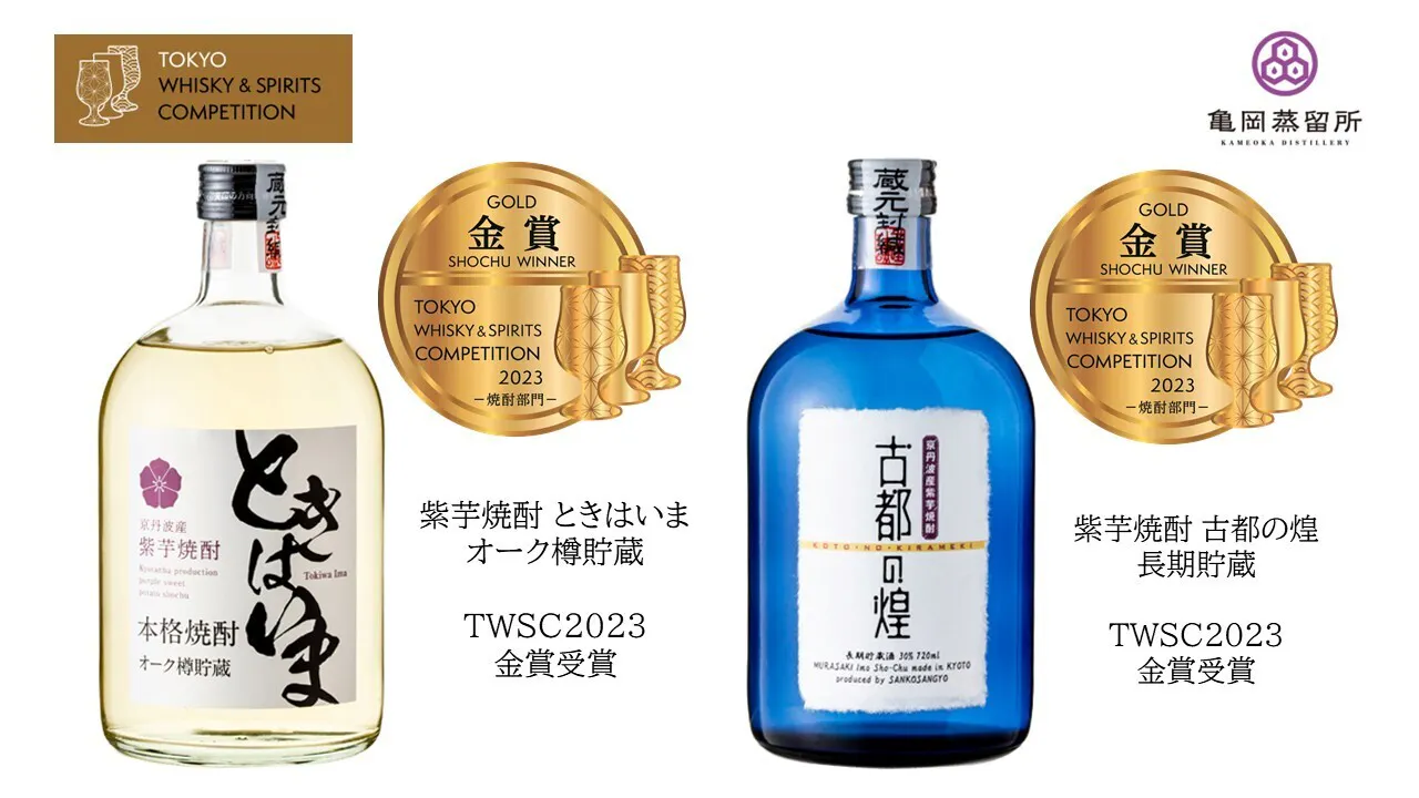 東京ウイスキー&スピリッツコンペティション2023(TWSC)の焼酎部門において、『古都の煌 長期貯蔵』と『ときはいま オーク樽貯蔵』の2品が初エントリーで金賞をW受賞しました。