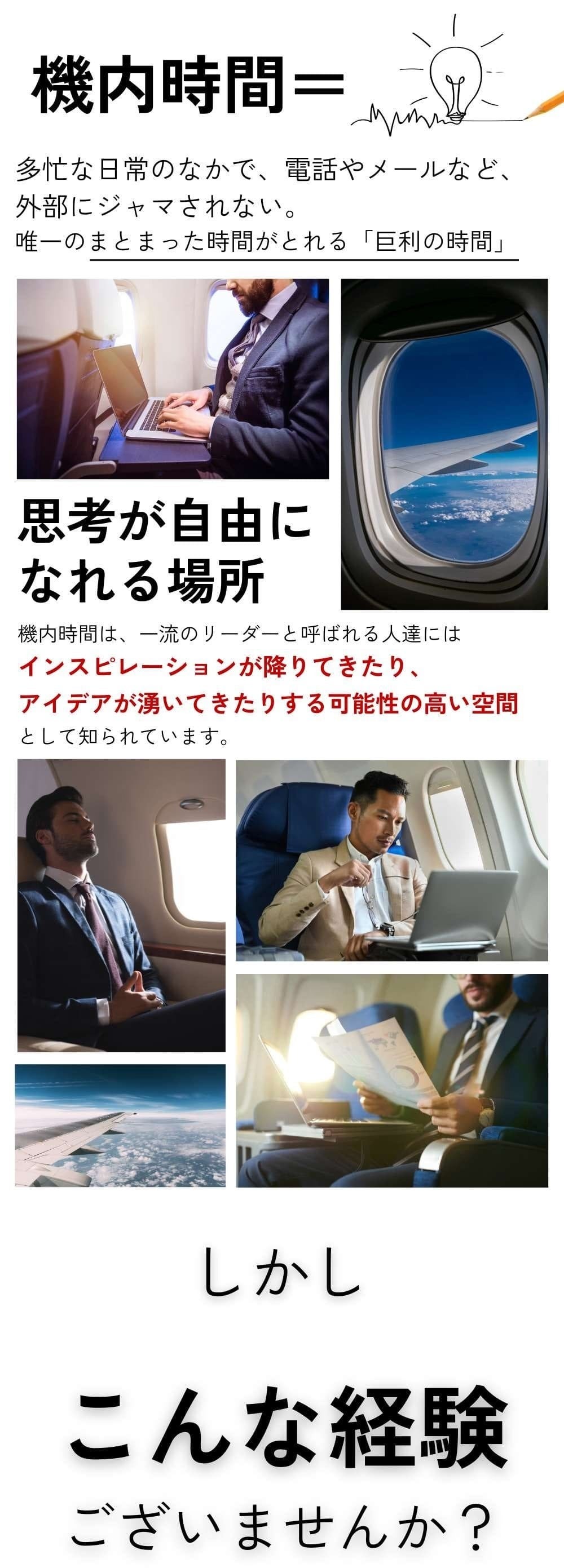 機内で過ごす時間は、日々の喧騒やインターネットの網から一時的に解放された、まさに「個の空間」そのものです。FLYYPODの創業者であるアンドリュー氏をはじめ、多くの成功者たちが、この時間を新しいアイデアやインスピレーションが湧きやすい、非常に貴重なものと捉えています。