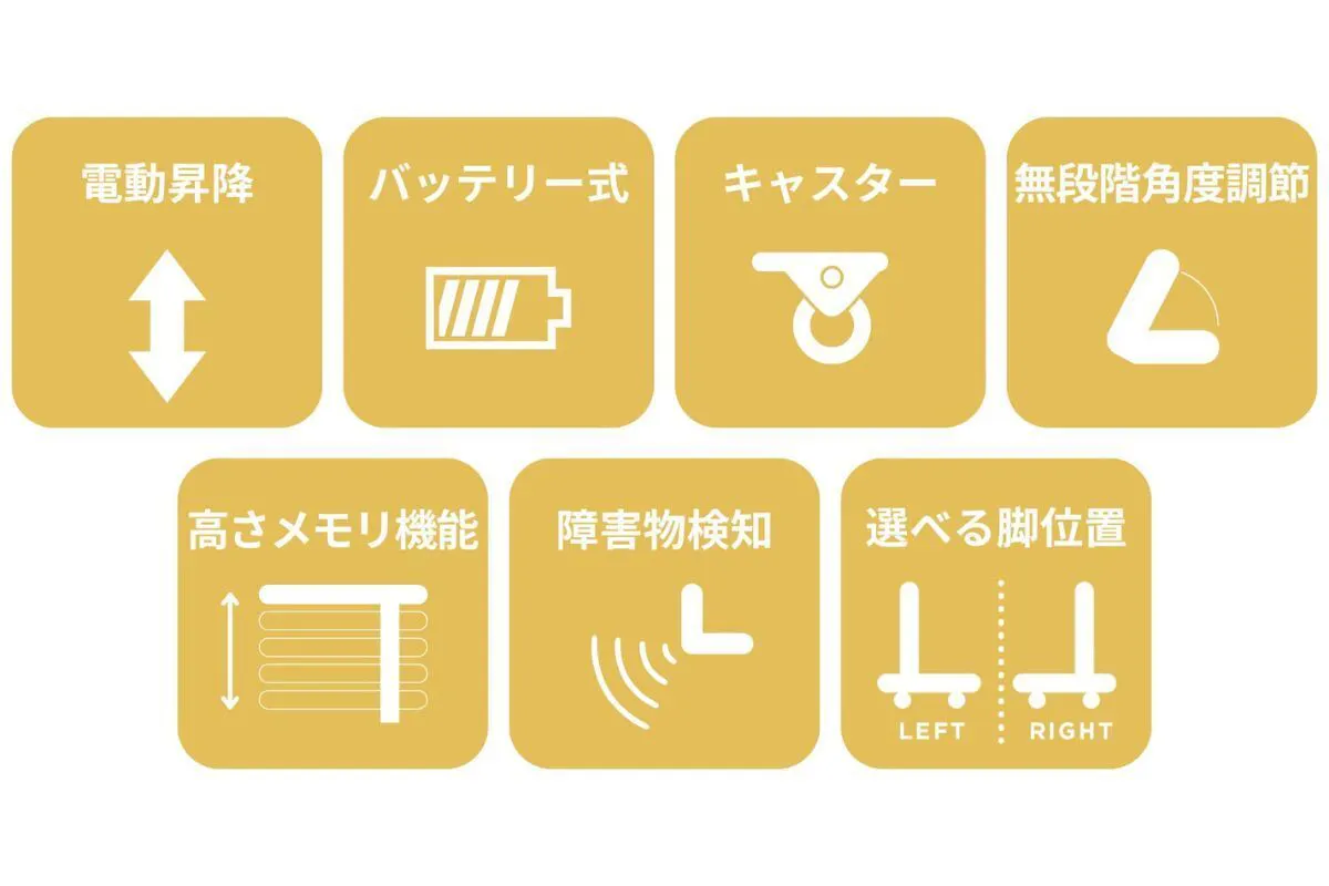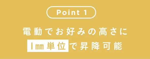 ・高さメモリ機能4つ 椅子の高さ・立った高さ・ソファの高さ・ベッドの高さなどに設定しておけば、毎回自動でジャストな高さに昇降!