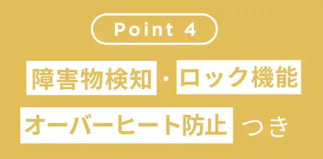 昇降中に障害物を検知すると自動で停止します。