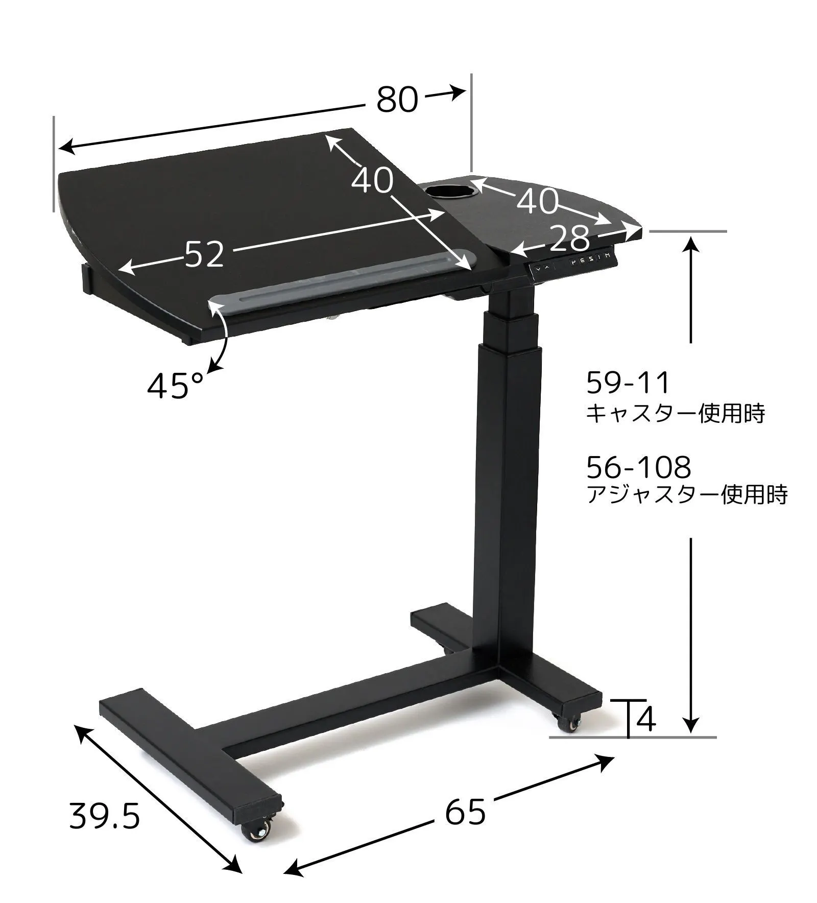 ・高さ キャスター使用時:59〜111cm、アジャスター使用時:56〜108cm