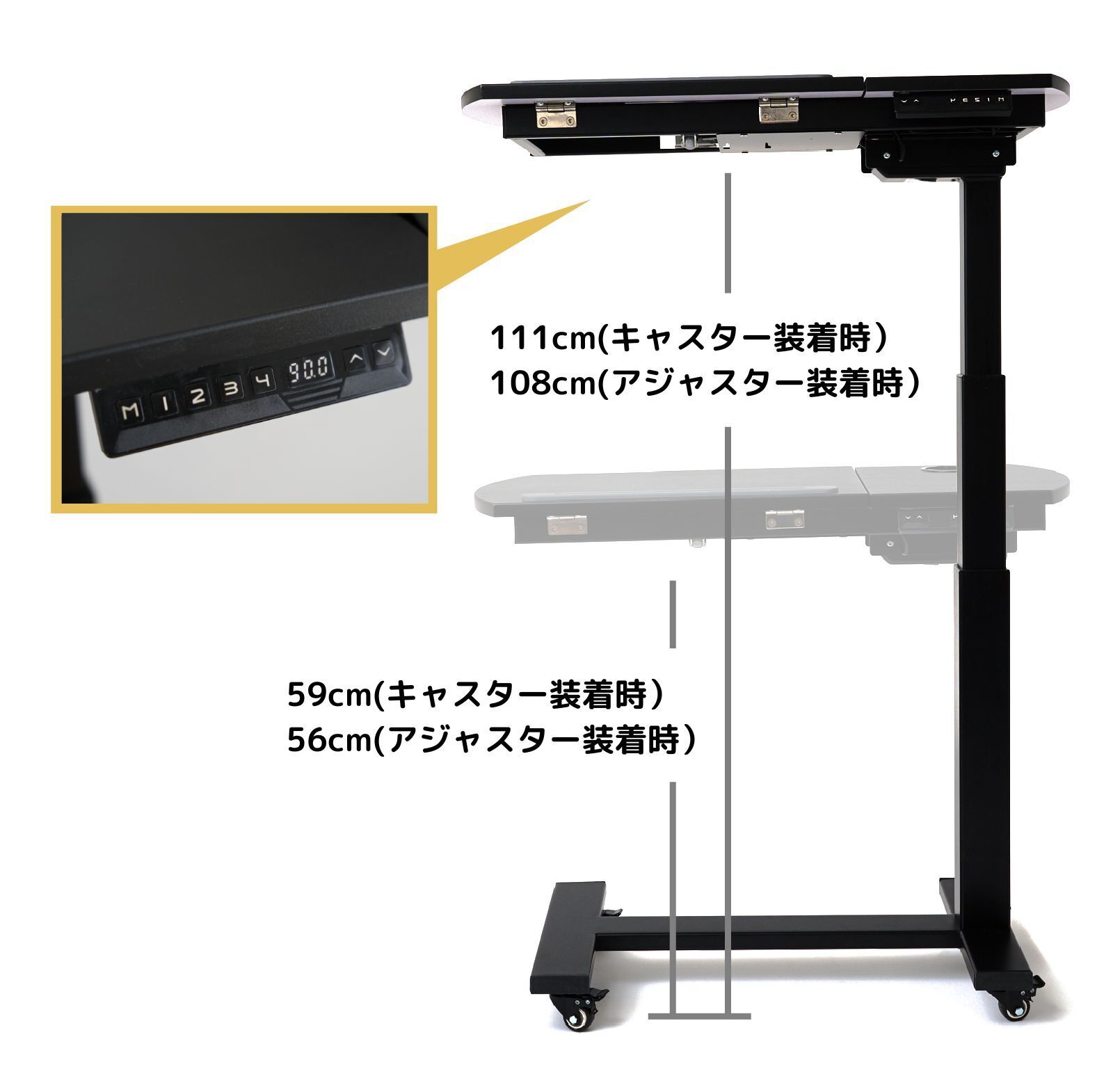 ・高さ キャスター使用時:59〜111cm、アジャスター使用時:56〜108cm