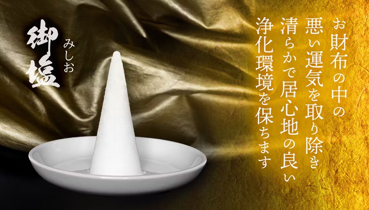 お財布の運気を整えて、運気を綺麗にする浄化の御塩(みしお)と本水晶紛(ほんすいしょうふん)さらに特別に2024年、金箔(きんぱく)と七彩(しちさい)で縁起を限界まで担ぐ。