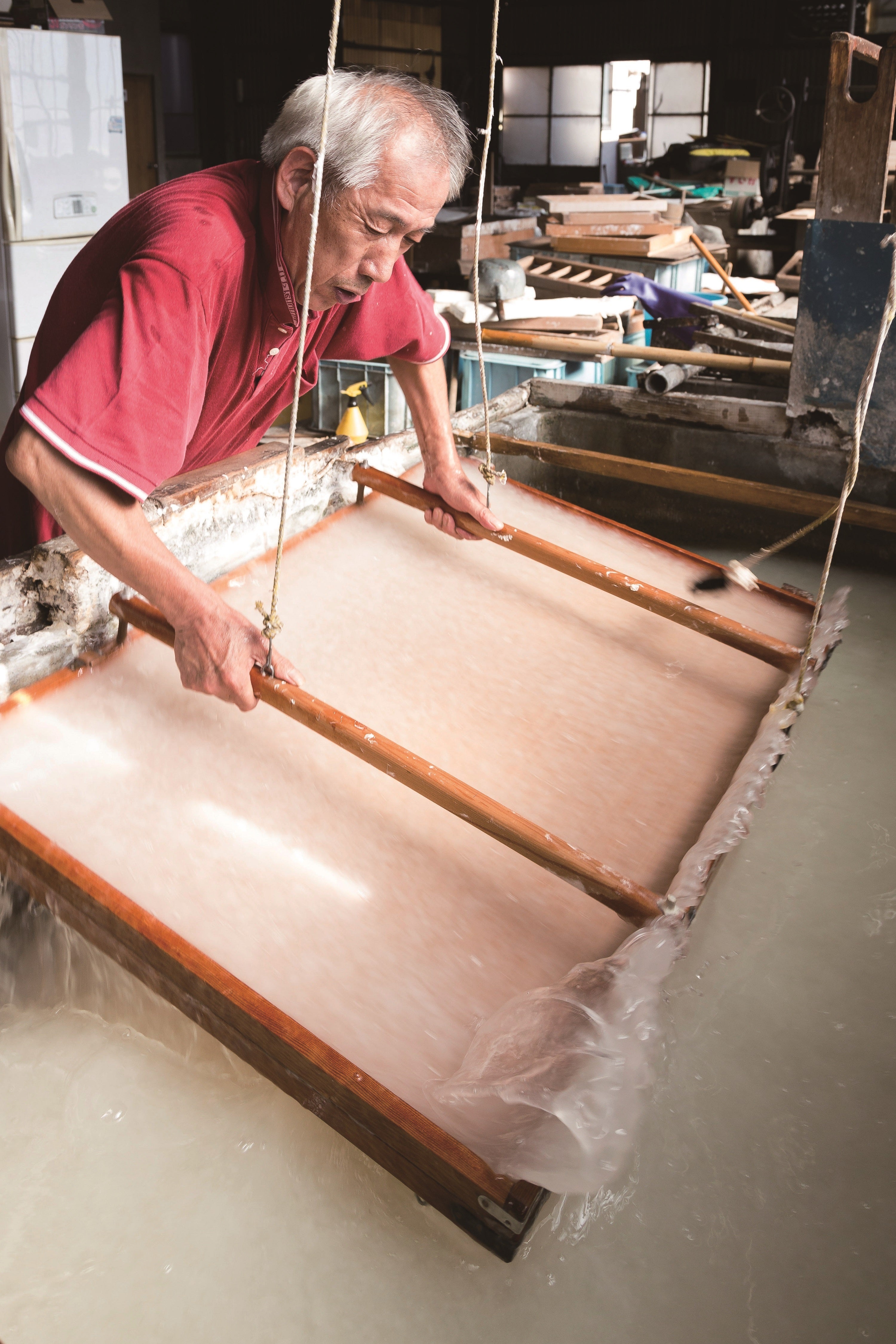 また花火とともに「和紙」の産地としても栄え、その起源は甲斐源氏の祖・新羅三郎義光の三男義清が市川へ移り住んだ時、家臣であった紙工の甚左衛門が優れた紙漉きの技術を伝授したことにはじまると言われています。市川和紙は美人の素肌のように美しいことから「肌吉紙」と呼ばれ、武田家や徳川幕府の御用紙として献上されました。この「市川和紙」こそ「市川花火」の生産、発展には欠かせないものでした。和紙で出来た半球に火薬を詰め、二つ合わせた球に帯状に切った和紙を繰り返し重ねて貼っていく。花火の美しさは和紙の質と絶妙な重ね貼りによって決まります。