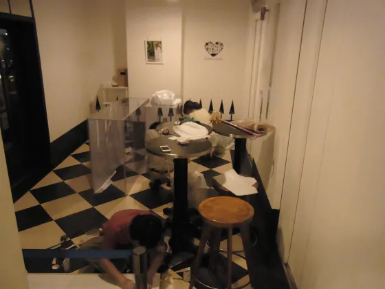 昨夜、夜な夜なステッキや展示ブースを搬入して…