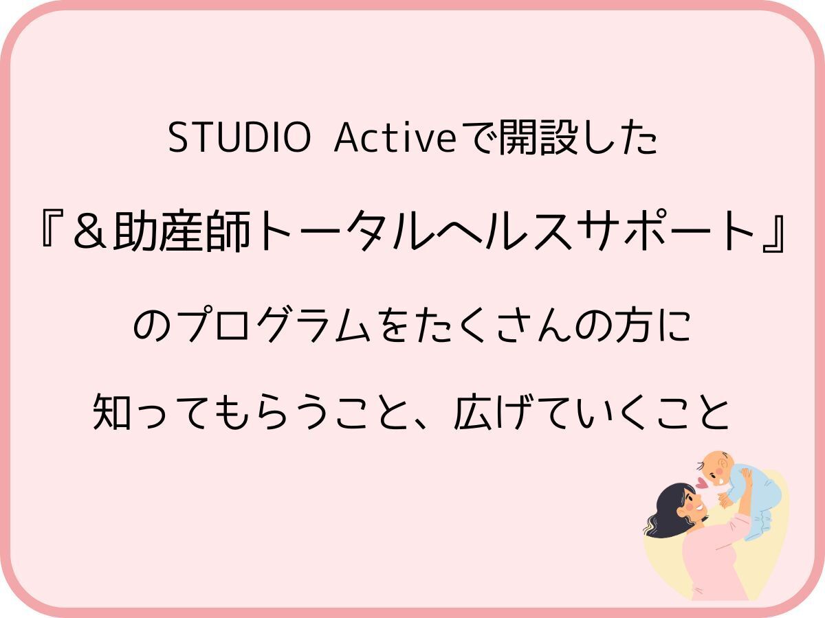 私が考えたSTUDIO Activeで行っている、女性の心と体を整えるプログラムは「&助産師トータルヘルスサポート」というタイトルです。トータルヘルスは、社会的•身体的•精神的•経済的などあらゆる面での健康を意味します。そのトータルヘルスを助産師が人生の伴走者として「&」しながら、サポートしていくという想いを込めています。