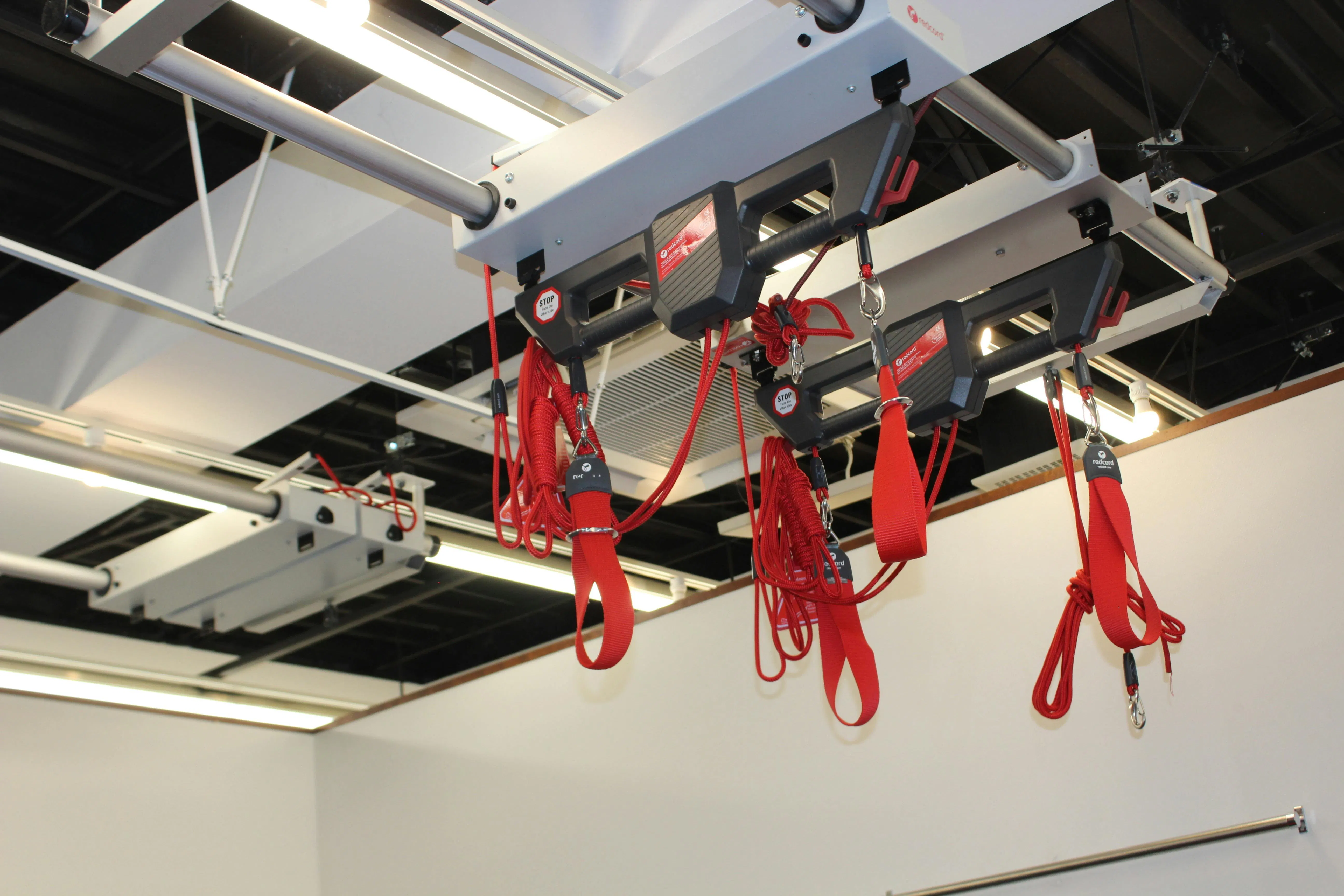 天井から吊るされた紐で身体を支え