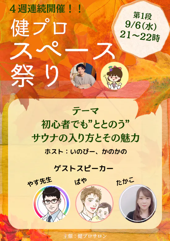 人生初めてのオフ会、人生初めてのスペース、それは健プロサロンの仲間とでした。単に医者をやっているだけでは、絶対に出会うことのできない人たちと出会うことができました。私は健プロの大ファンです。健プロをずっと応援します。