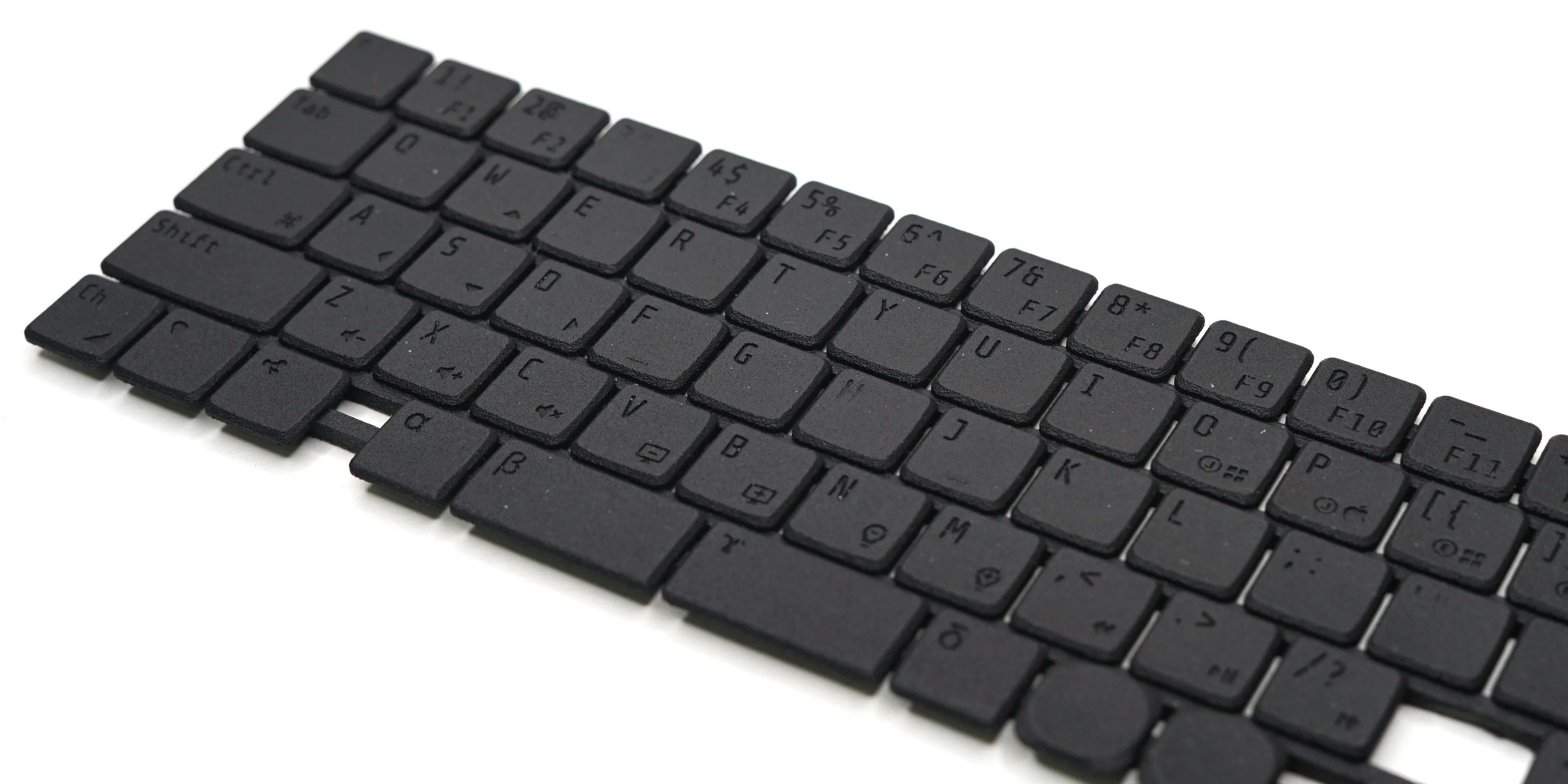 16mmキーピッチに、汎用的なデザインではないPCキーボードデザインのために、既存の方法だと製造コストが高くなってしまいました。なるべく価格を抑えるために、光積層方式と呼ばれる3Dプリント技術を使うことで、製造コストを安く抑え、またキーキャップのバリエーションを増やすことに成功しました。