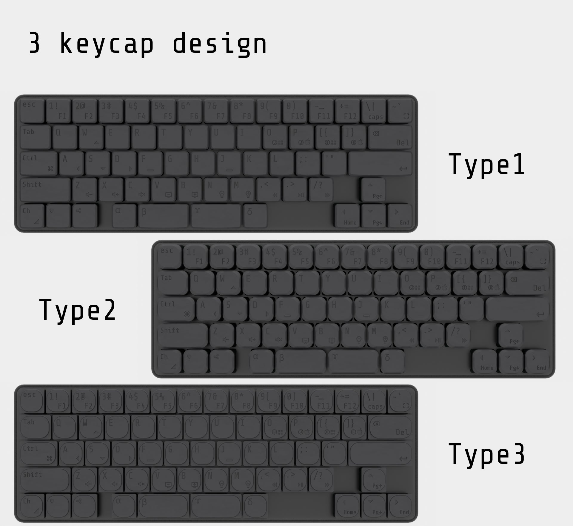 #3種類のデザインのキーキャップ