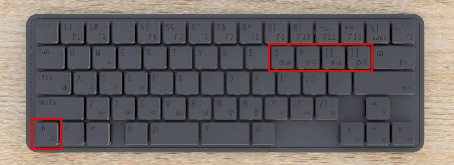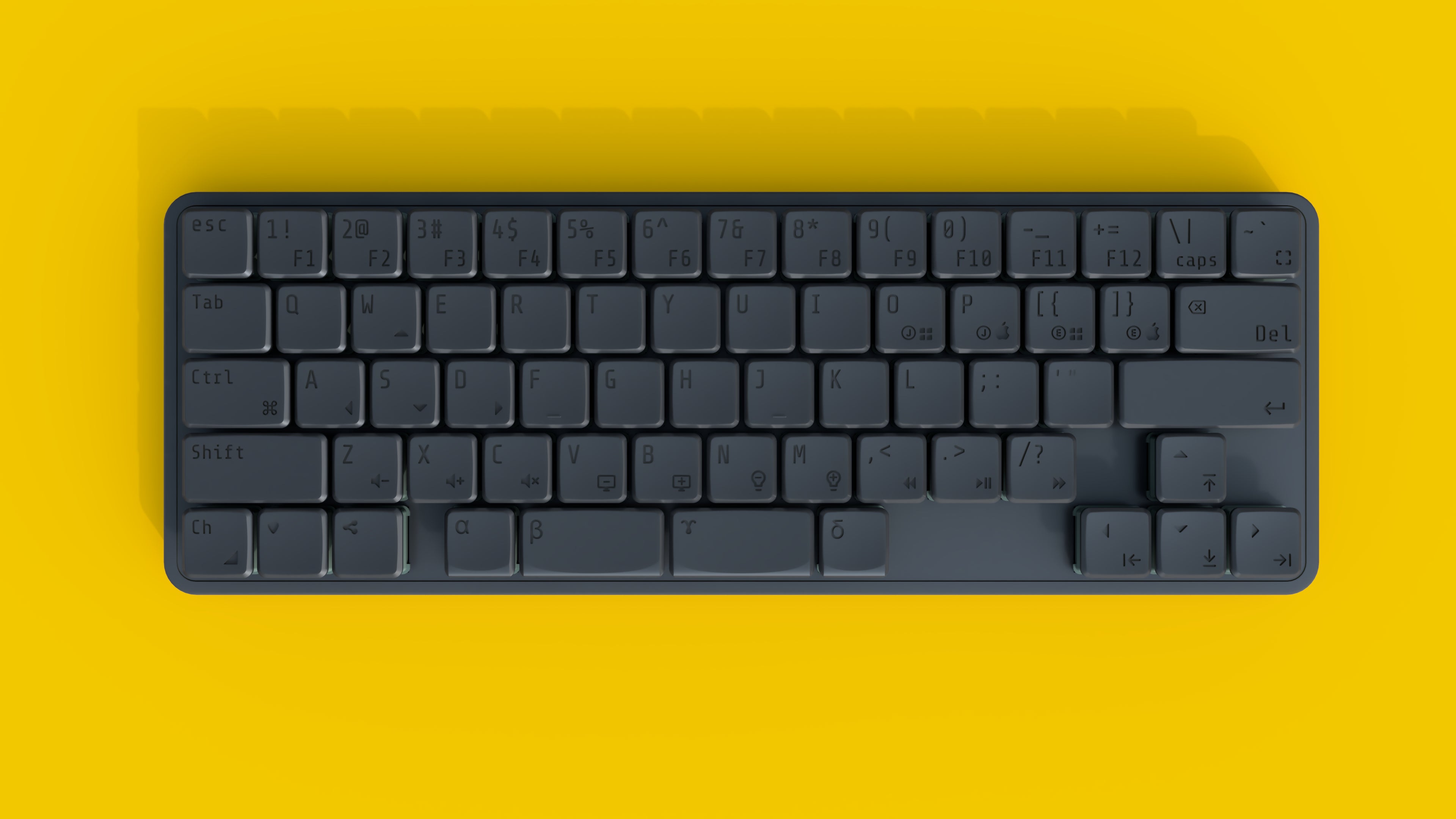 ※すべてのキーキャップの α、β、γ、δ の4キーにスロープデザインを採用しております。