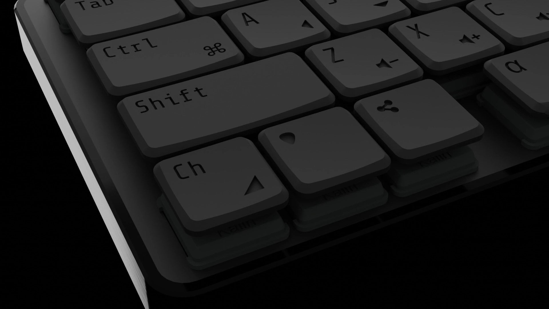 主に親指で操作する α、β、γ、δの4キーのキーキャップにはスロープをつけることで親指が引っかからないようにデザインしました。