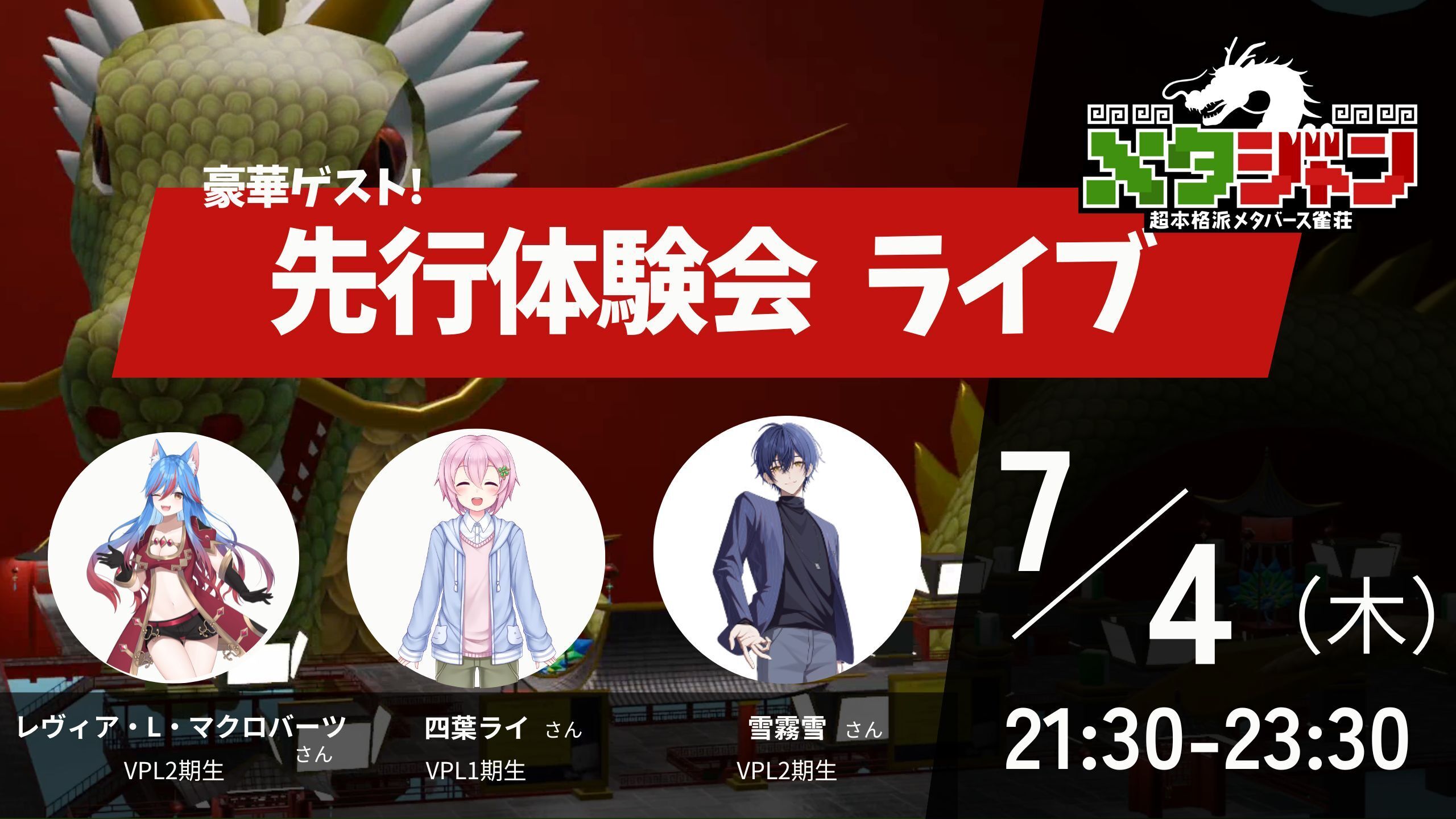 先日の7月4日はレヴィア・L・マクロバーツ様、四葉ライ様、雪霧雪様をお招きし、先行体験会を実施しました。
