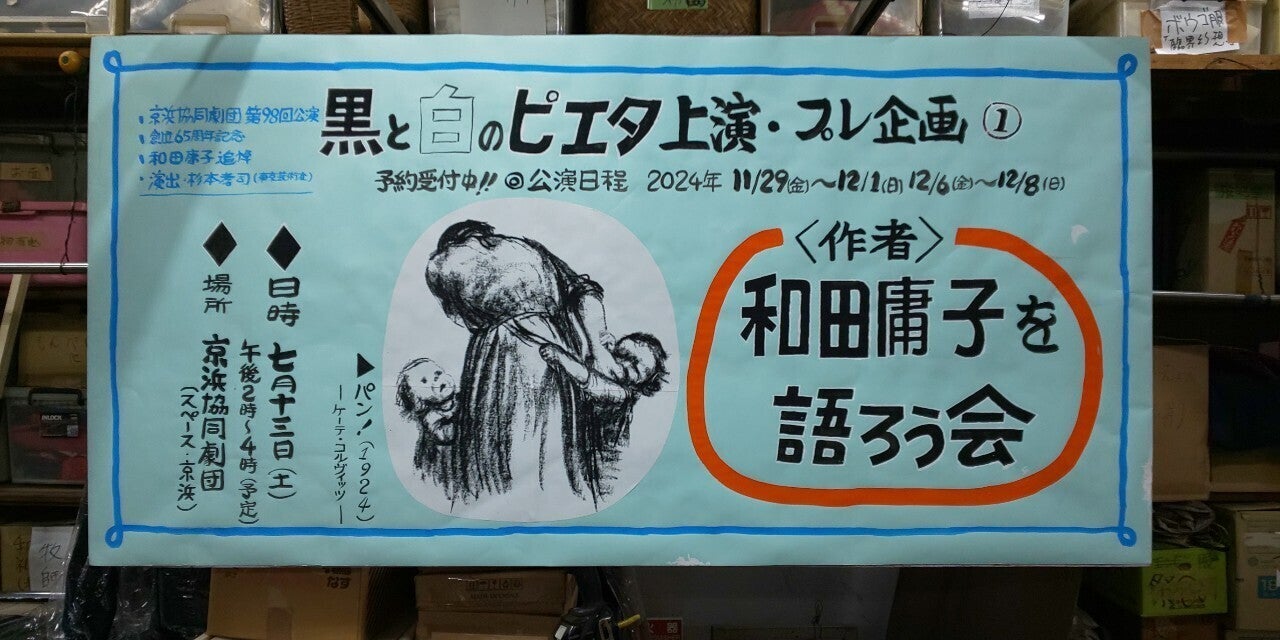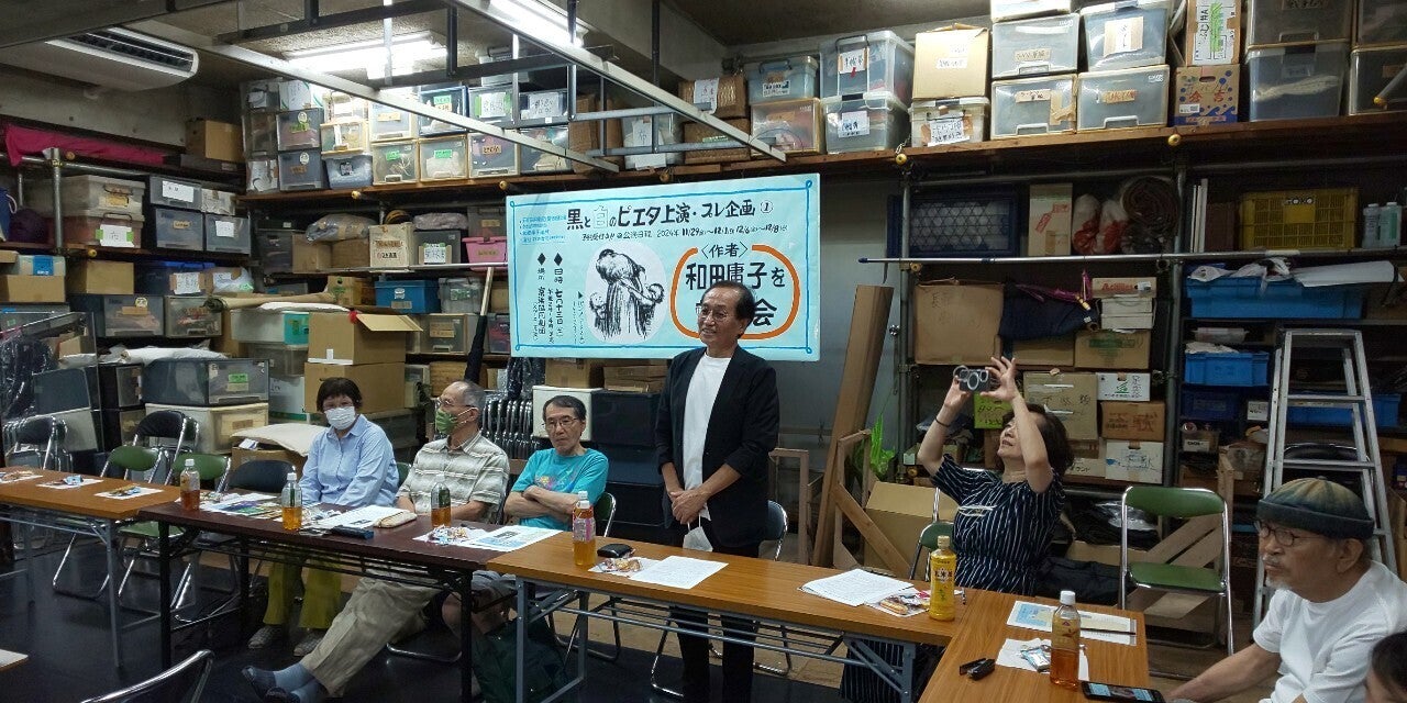 さて、「黒と白のピエタ」上演プレ企画の第1弾として、「和田庸子を語ろう会」が開催されました。作家であり女優でもあった和田庸子の足跡を偲び、「黒と白のピエタ」を理解する手掛かりにしようと開催された本企画ですが、演出の杉本さんを始め多くの方にお集まりいただきました。