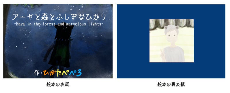 絵本『アーヤと森とふしぎなひかり』の表紙と裏表紙のイラストです