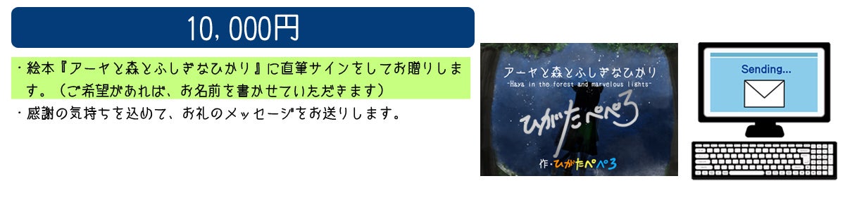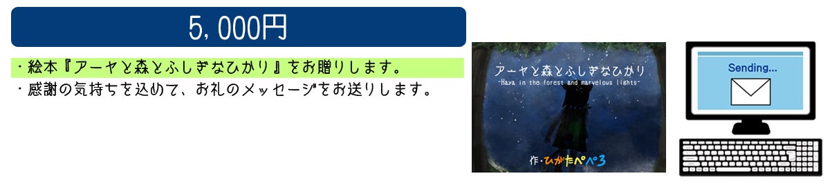 支援してくださった方々には、絵本『アーヤと森とふしぎなひかり』をお贈りさせて頂きます。