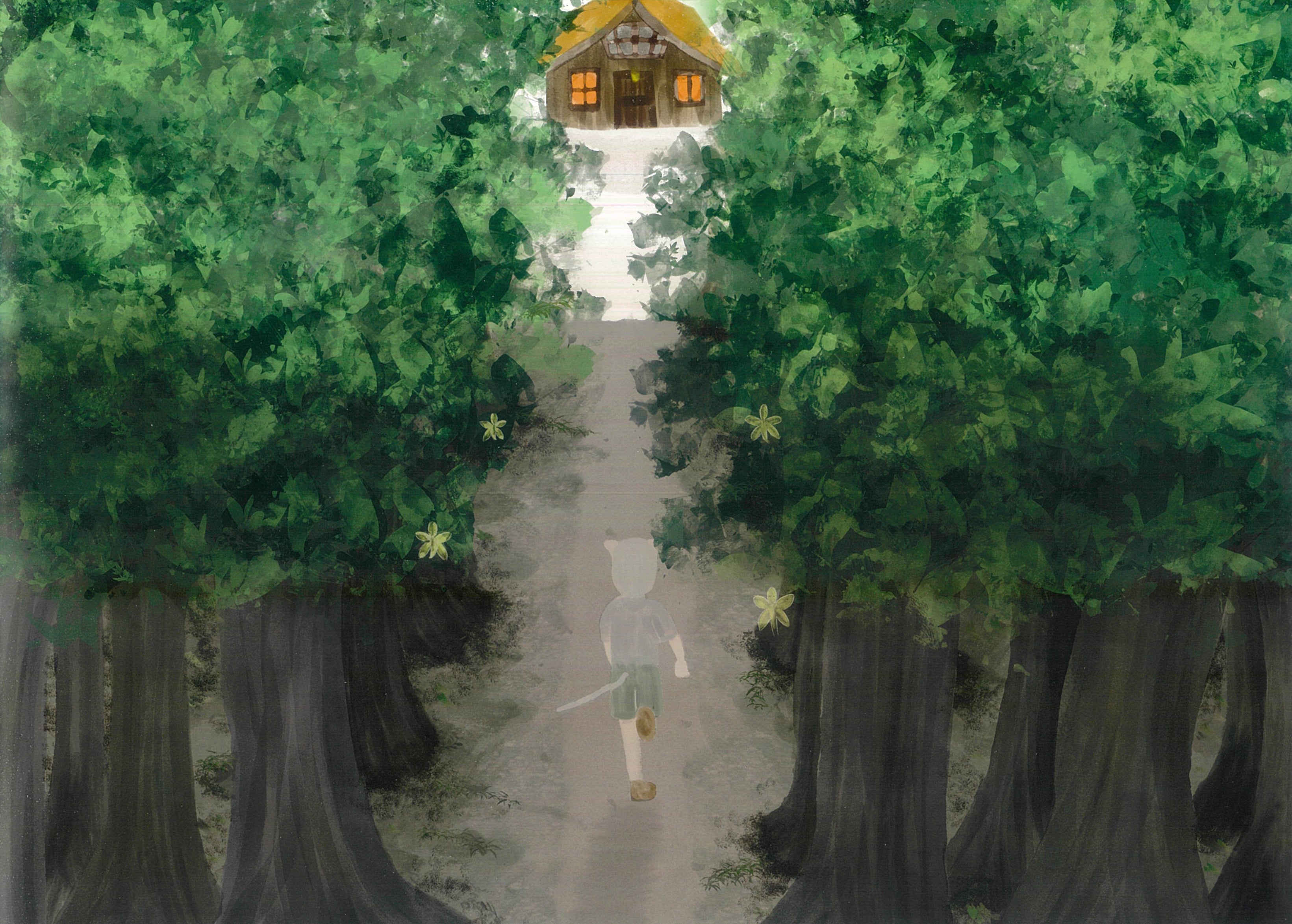 • 『アーヤと森とふしぎなひかり(その3)』に出てくる、ヒョウスケくんがアーヤのお家に走っていくシーンです。【一番最初に描いた絵】最初、アーヤのお家に走っていくヒョウスケくんの目線で描きました。野暮ったいのでボツです。【手前に影を入れて演出】森の中にもかかわらず、明るすぎて単調だったので、影を入れました。ひかりの妖精 “ マヨネイズ ” が大きすぎて変だったので、いったん絵からのぞきました。【下書きから再スタート】アーヤのお家に走っていくヒョウスケくんを下書きから描き直しました。こちらはその下絵です。【走っていくヒョウスケくんを絵の中心に配置】下絵では木が整列しすぎていたので不揃いに配置しました。影を印象的に見せるために、アーヤのお家の方から光が射している感じにしましたがイマイチでした。木があまりにも細く弱弱しすぎたため、太く描き直すことにしました。【完成した絵】木々には動きのある緑を何色も塗り足しました。木の根っこにも苔らしき色を描き足しました。ひかりの妖精 “ マヨネイズ”   は、ヒョウスケくんを見守るように配置して、完成しました!Xでは、週2回絵本の連載を行っております。>> X『アーヤと森とふしぎなひかり』 <<ぜひともご覧頂けましたら幸いです。 もっと見る