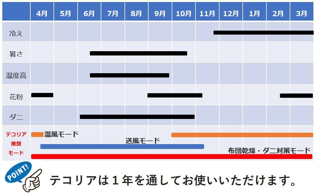 テコリアはオールシーズン使えますので、季節によって出したり片づけたりする必要はありません。
