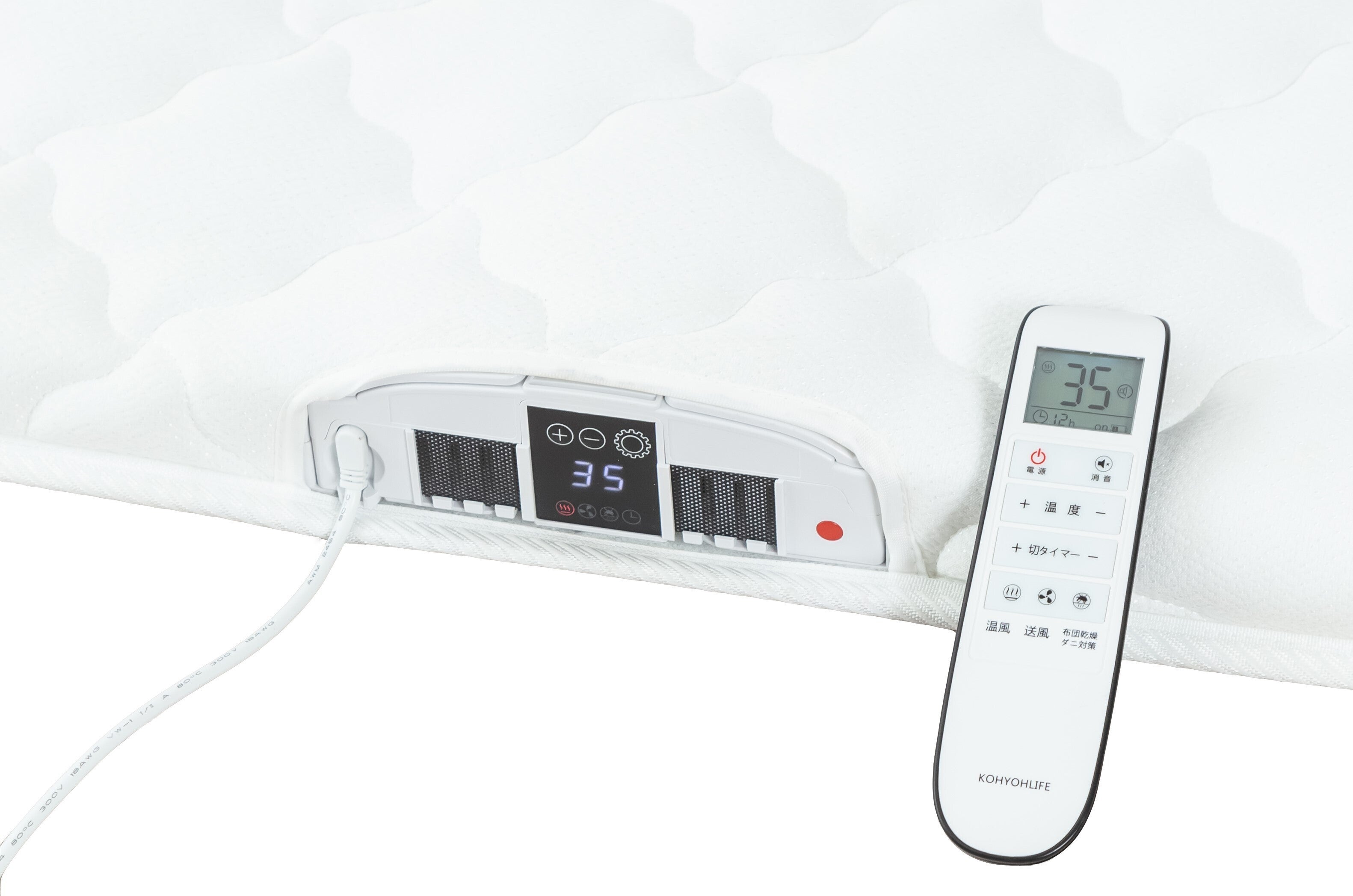 温風をマットレス内に循環させます。温風の温度は、20~37℃の間で1℃ずつ調節できます。