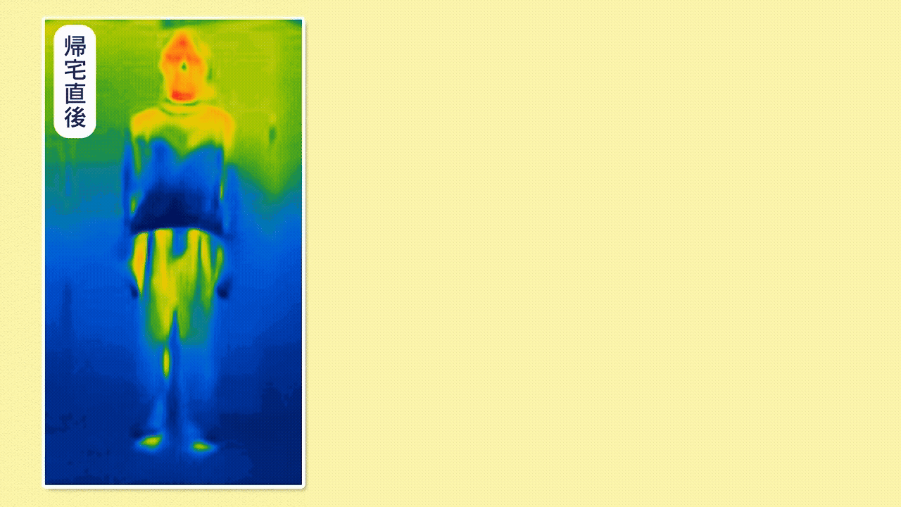 実験!冷え性の女性にテコリアでお休みいただき、15分後、30分後の体表温度の変化を確認しました!