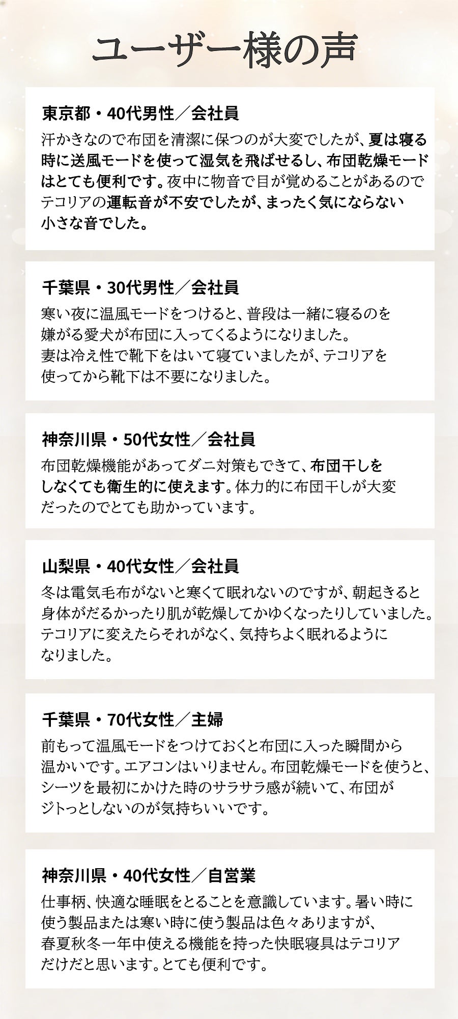 ☑ 電気毛布、温風ヒーターが苦手