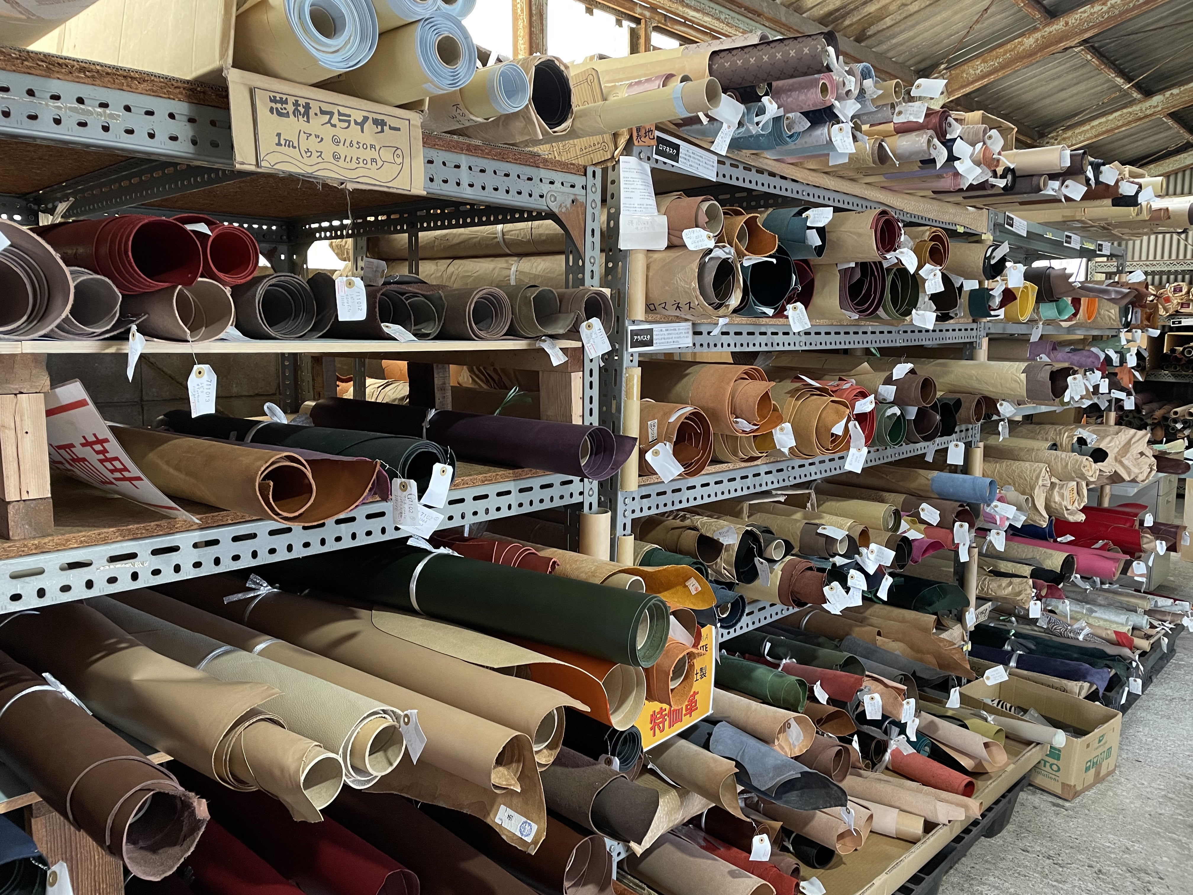 ずらっと並ぶ革と香りが、最高にワクワクする愛産商会さん。