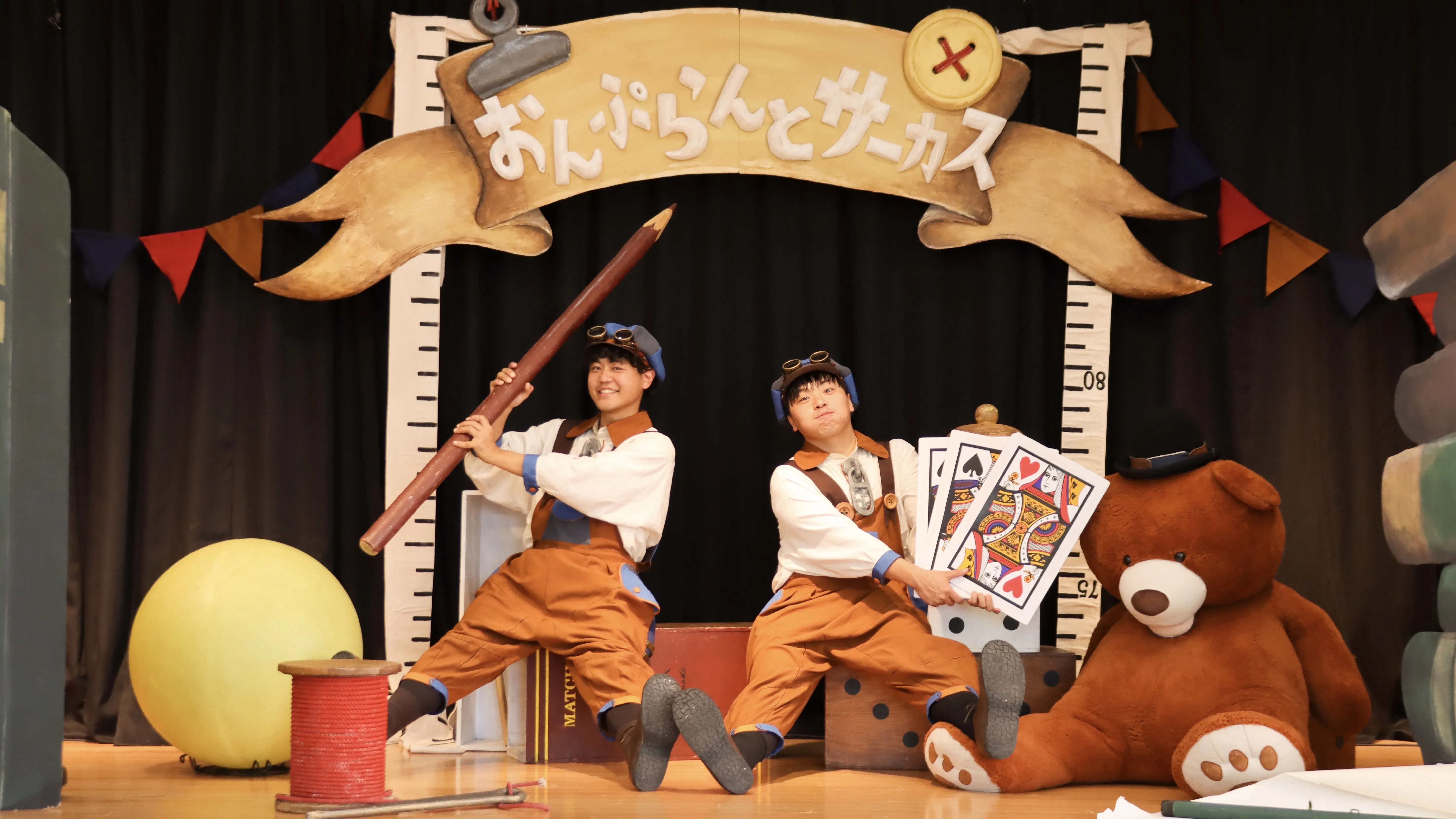 扉を開けると、こびとたちの夢とワクワクが詰まったサーカスが始まります。 マッチ棒やえんぴつの軽快なジャグリング、大きなトランプを使った驚きのマジック、最後はハラハラドキドキのバランス芸など、2人のパフォーマンスは笑いと驚きがいっぱい!