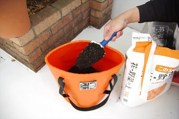 水や土を入れた際でもしっかりと立った状態を保ち、作業効率を向上させます。キャンプ中や作業現場での便利なアイテムとして活躍します