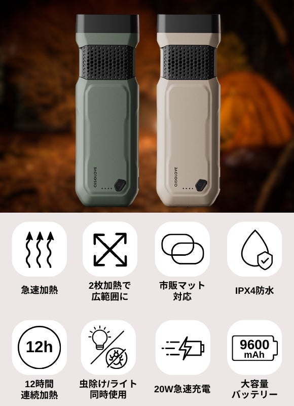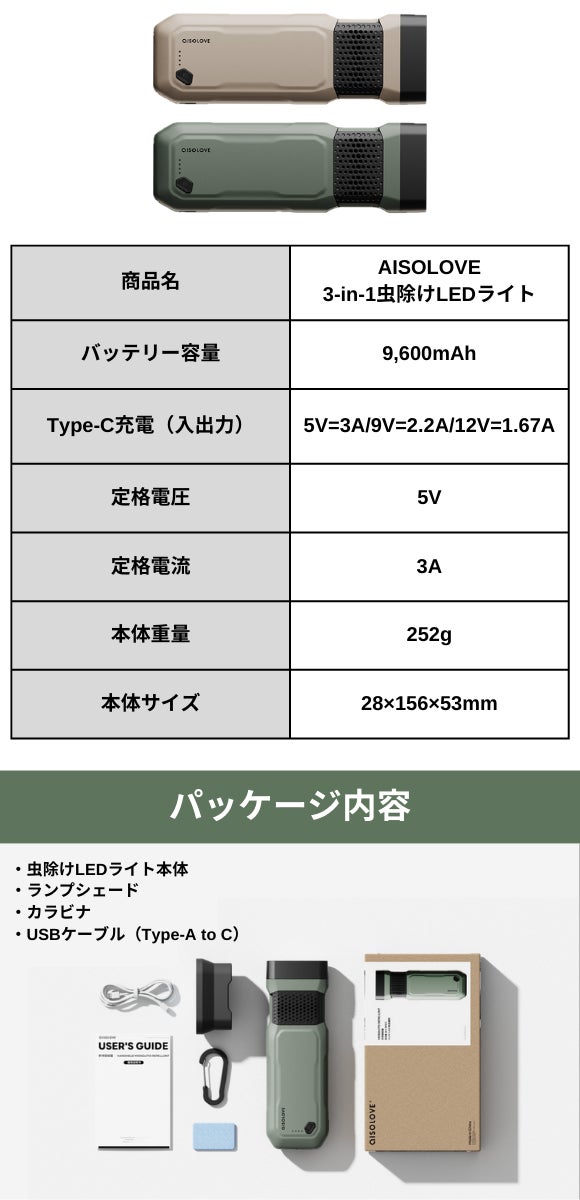 AISOLOVE 3-in-1虫除けLEDライトは、「虫除けマット加熱器・LEDライト・モバイルバッテリー」が1つになった、アウトドア好きのための虫除けギア。