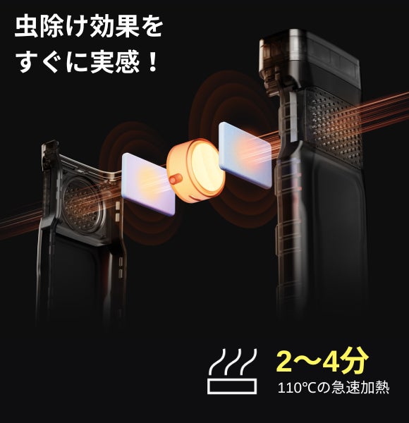 わずか2〜4分で、虫除け効果を発揮する110℃まで加熱されます。