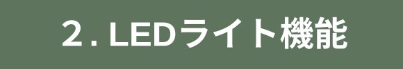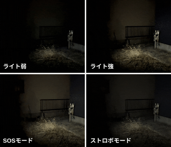 LEDライト機能は、「弱」「強」「SOS」「ストロボライト」の4機能を切り替えられます。