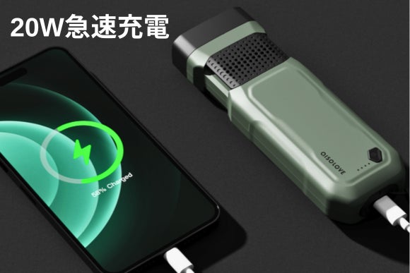 モバイルバッテリーとしての機能にも優れており、USB PD(USB Power Delivery)に対応しています。入力、出力ともに最大20Wに対応しているので、スマホなどへの充電はもちろん、本体への充電も急速充電できます。