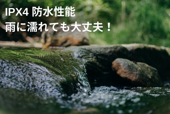 当製品はIPX4の防水性能を備えているため、急な雨に降られても大丈夫です。