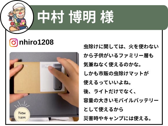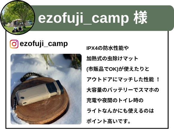 キャンプ・アウトドア系インフルエンサーの方々に、製品を先行体験いただき、レビューをいただきました。
