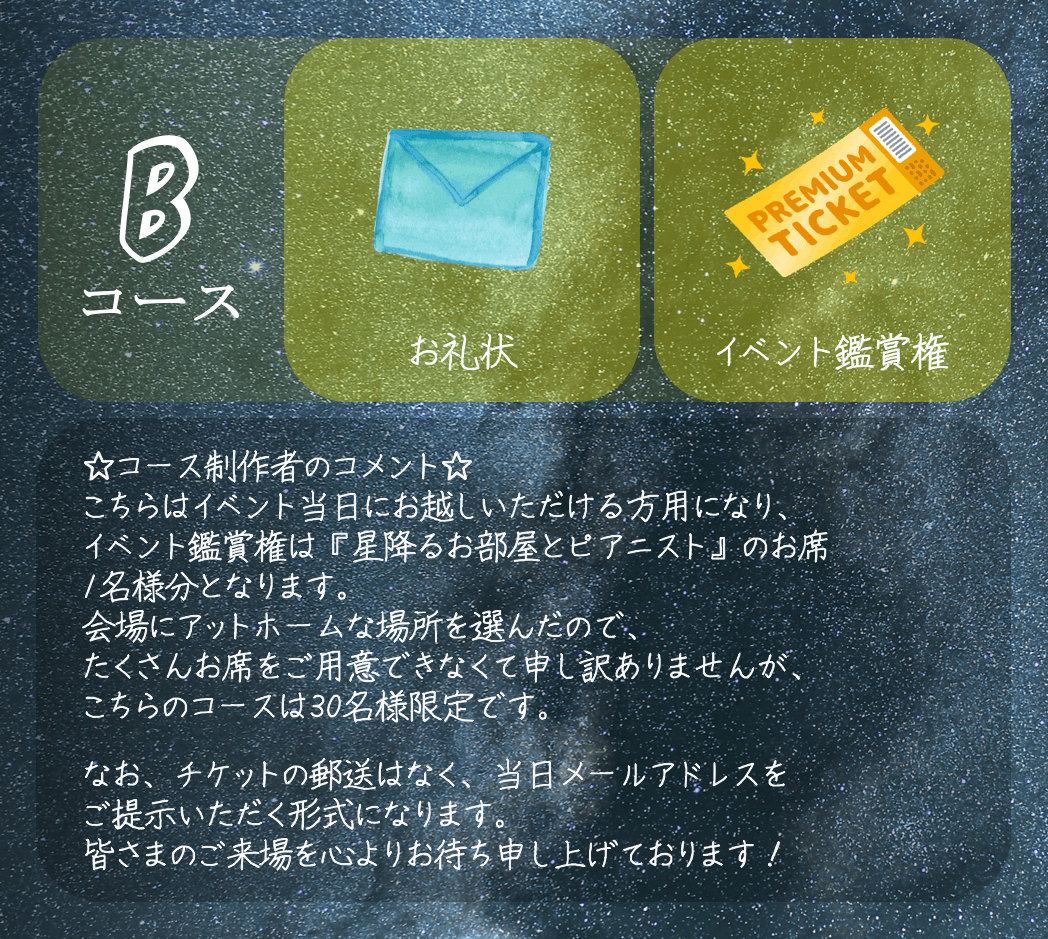 もっと見る「星降るお部屋とピアニスト~ピアネタリウムへようこそ~」をご支援頂きました皆様へ