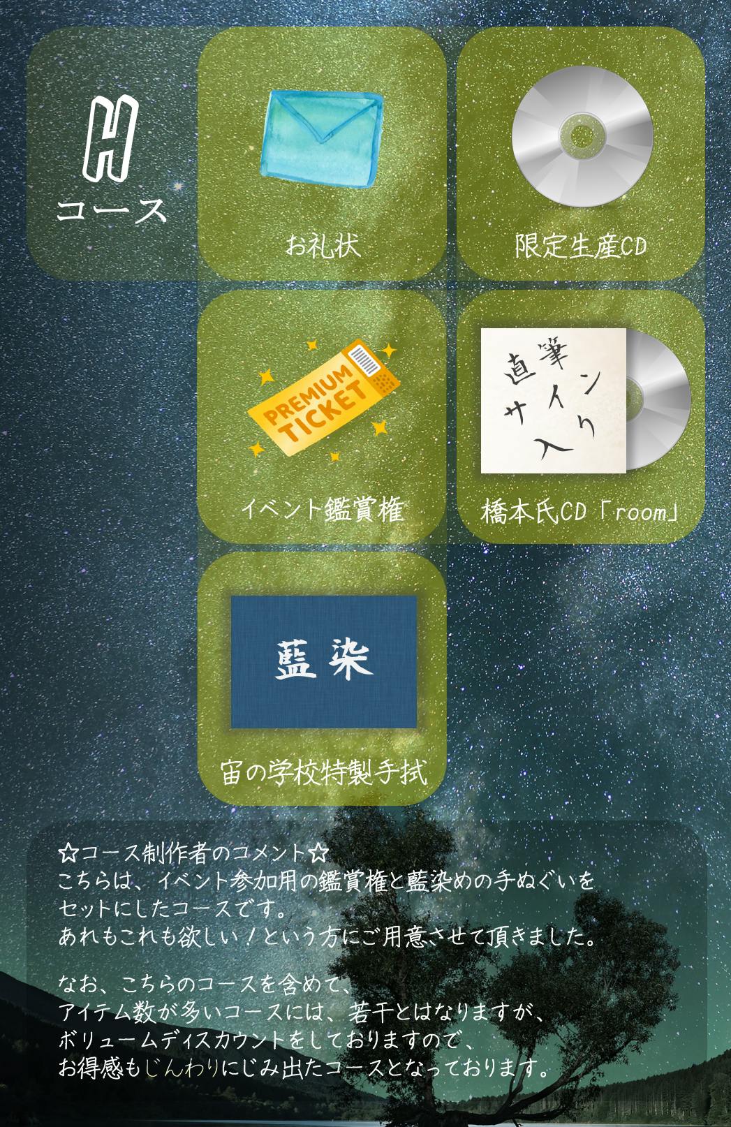 ◎宙の学校特性 藍染めの手ぬぐい参考画像は上記Eコース参照