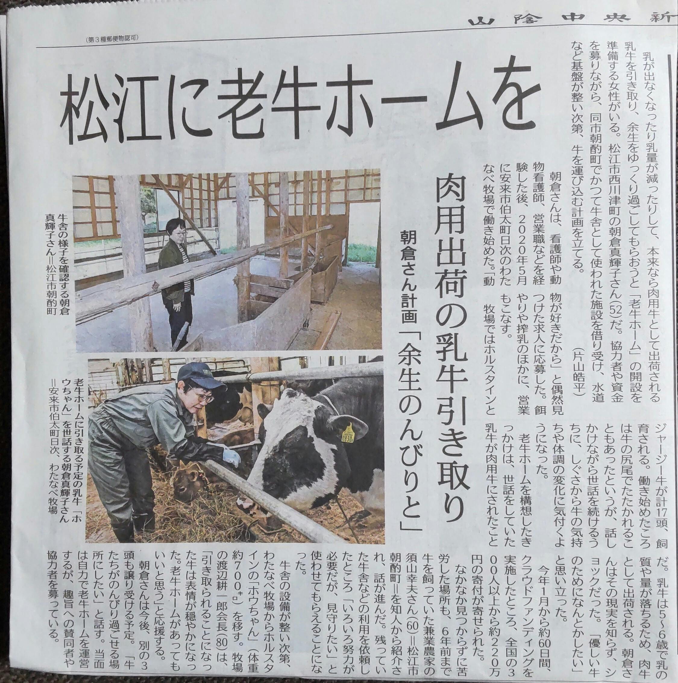 ⚫2023年4月21日 山陰中央新報掲載(山陰中央新報社発行・掲載許諾は取得しております)