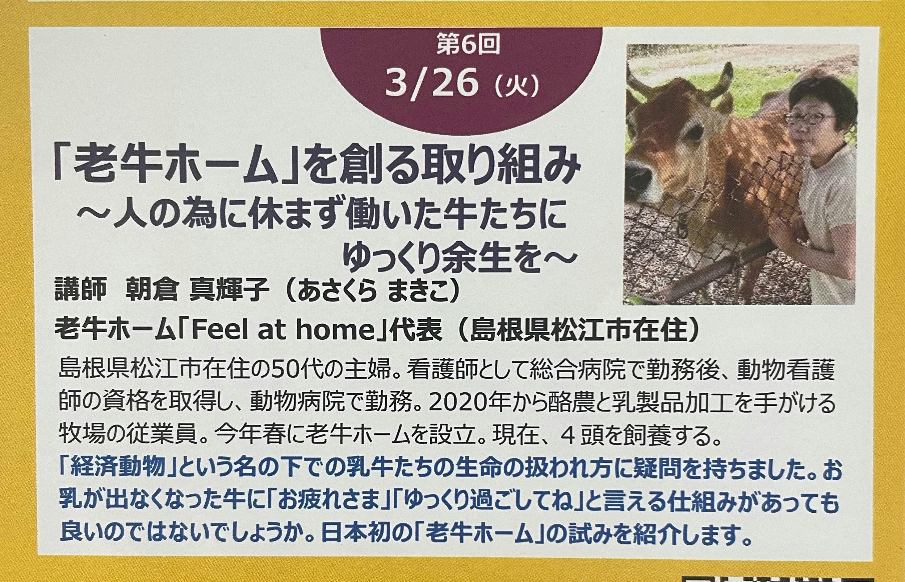 ⚫NPO法人さっぽろ自由学校「遊」連続講座~人と動物との共存・共生をめざして2024年3月26日の第6回にて取り組みを紹介。